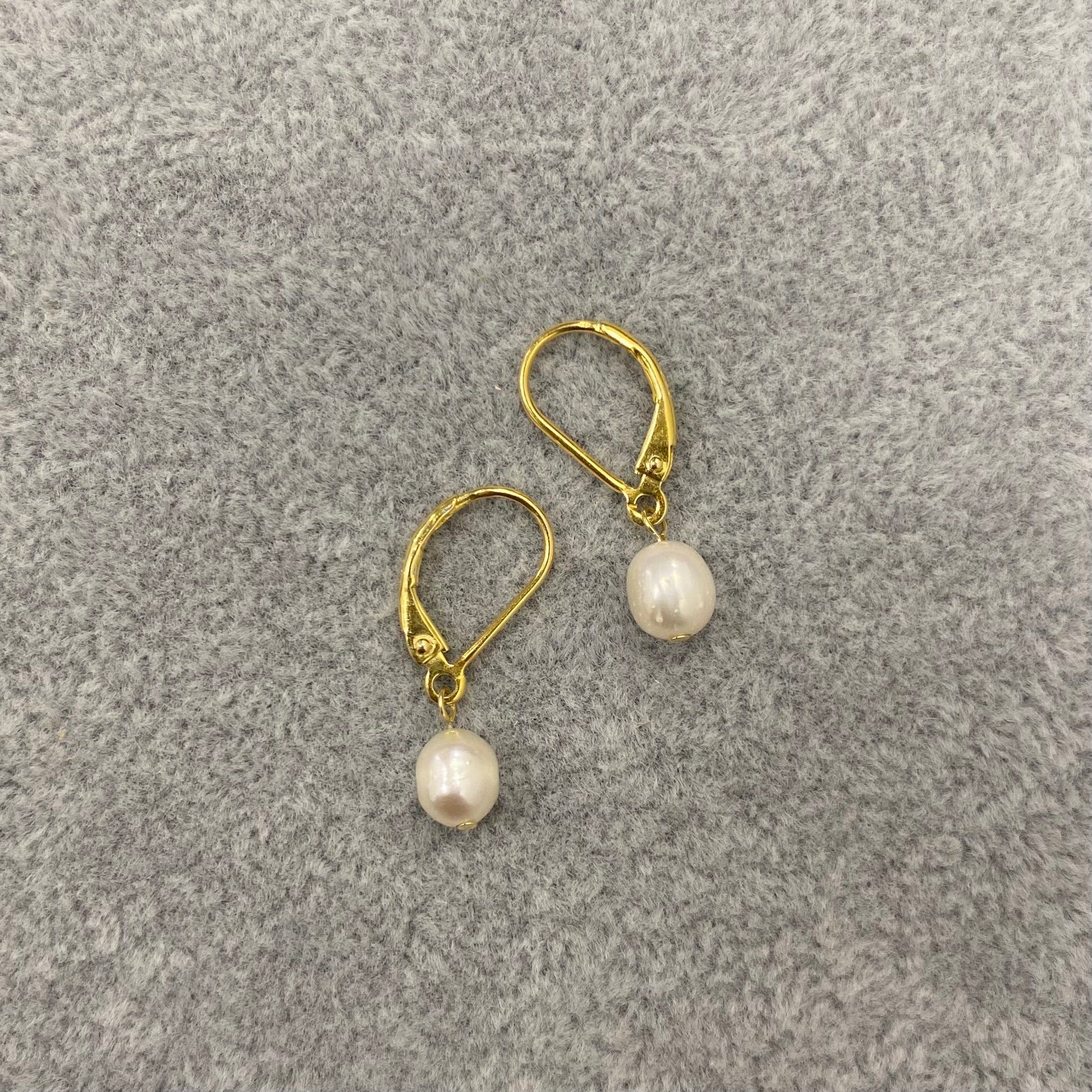 Sidabriniai auksuoti kabantys auskarai su perlu