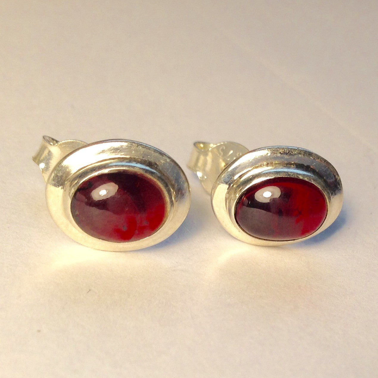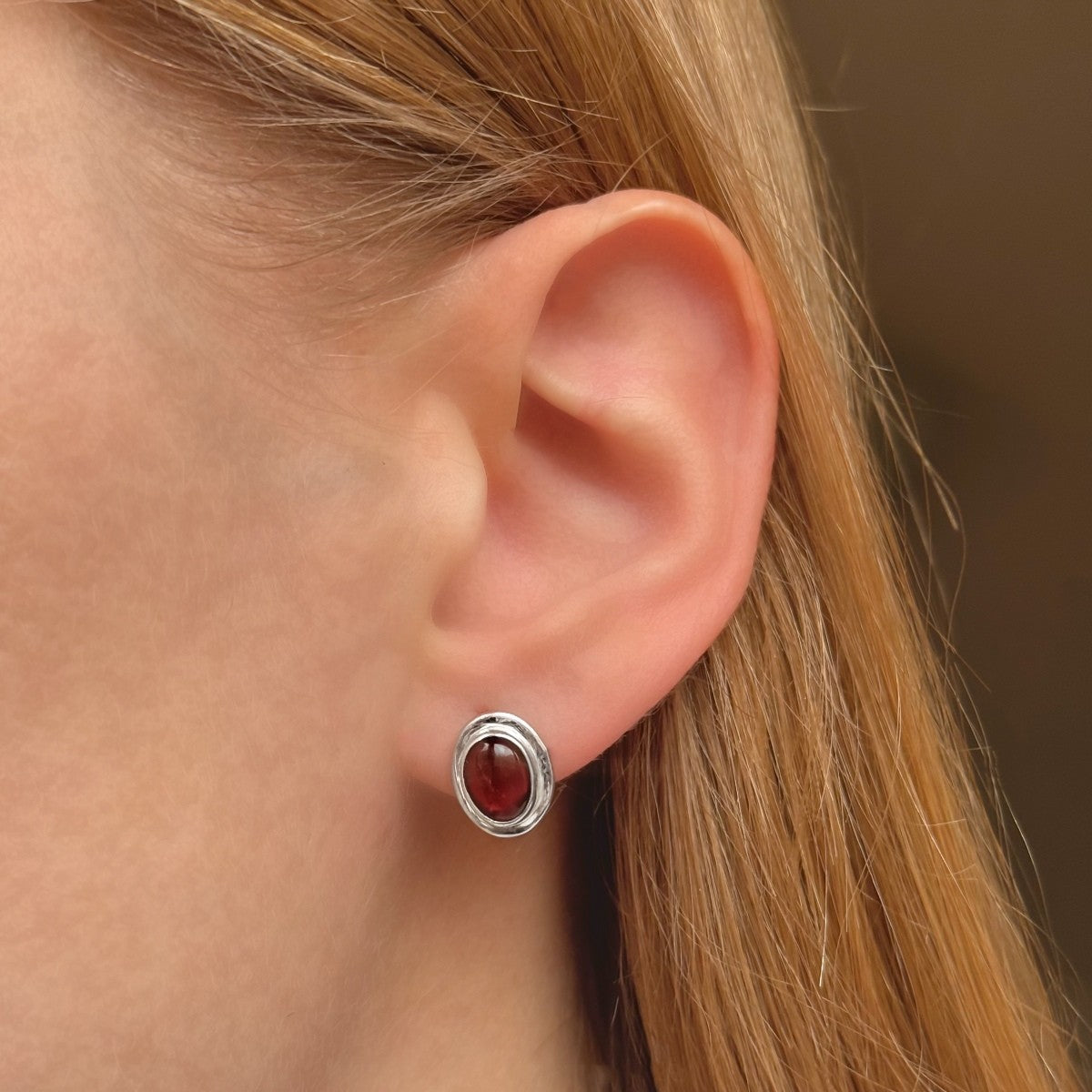 Sidabriniai auskarai su granato akmeniu ovalūs