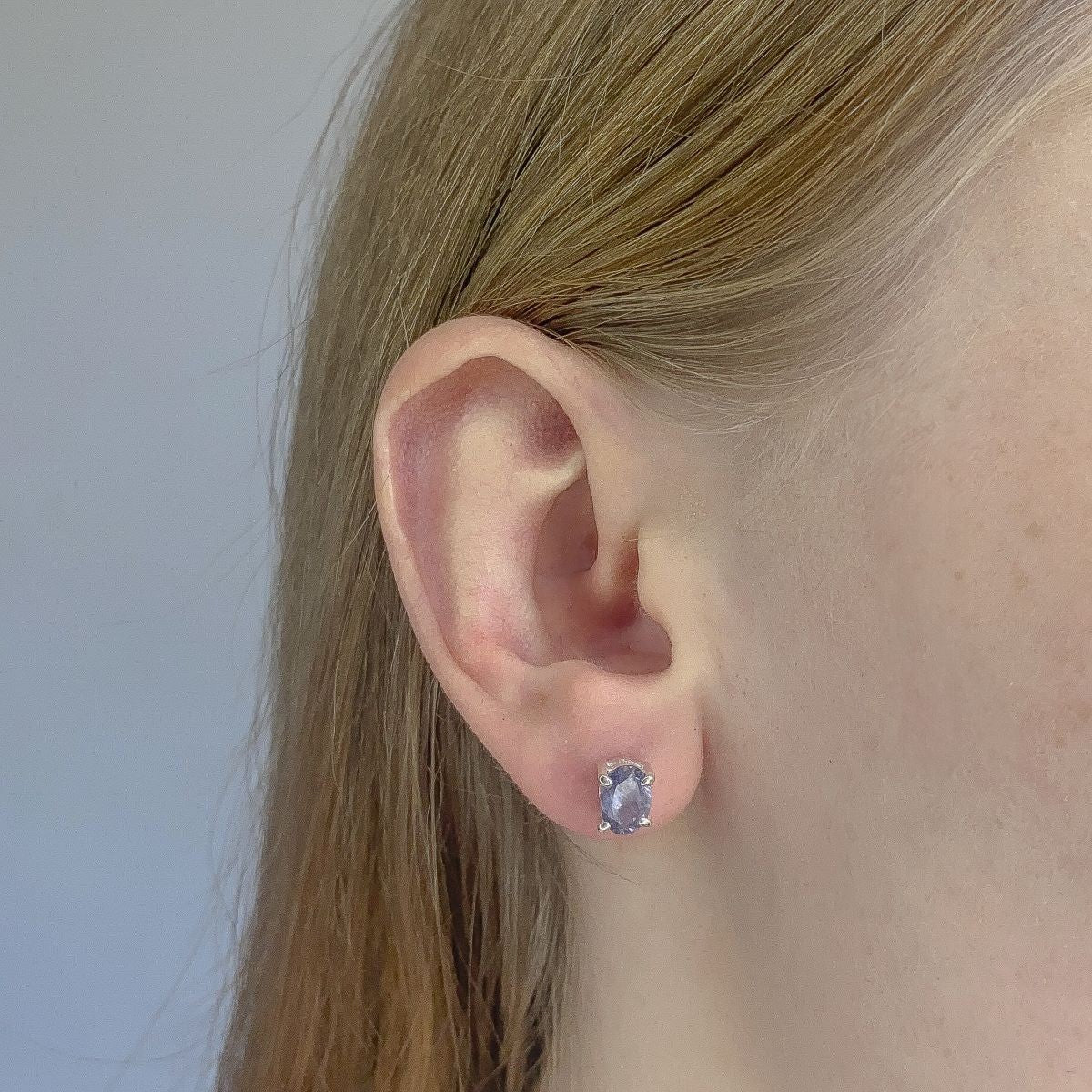 Sidabriniai auskarai su ovaliu jolito akmeniu