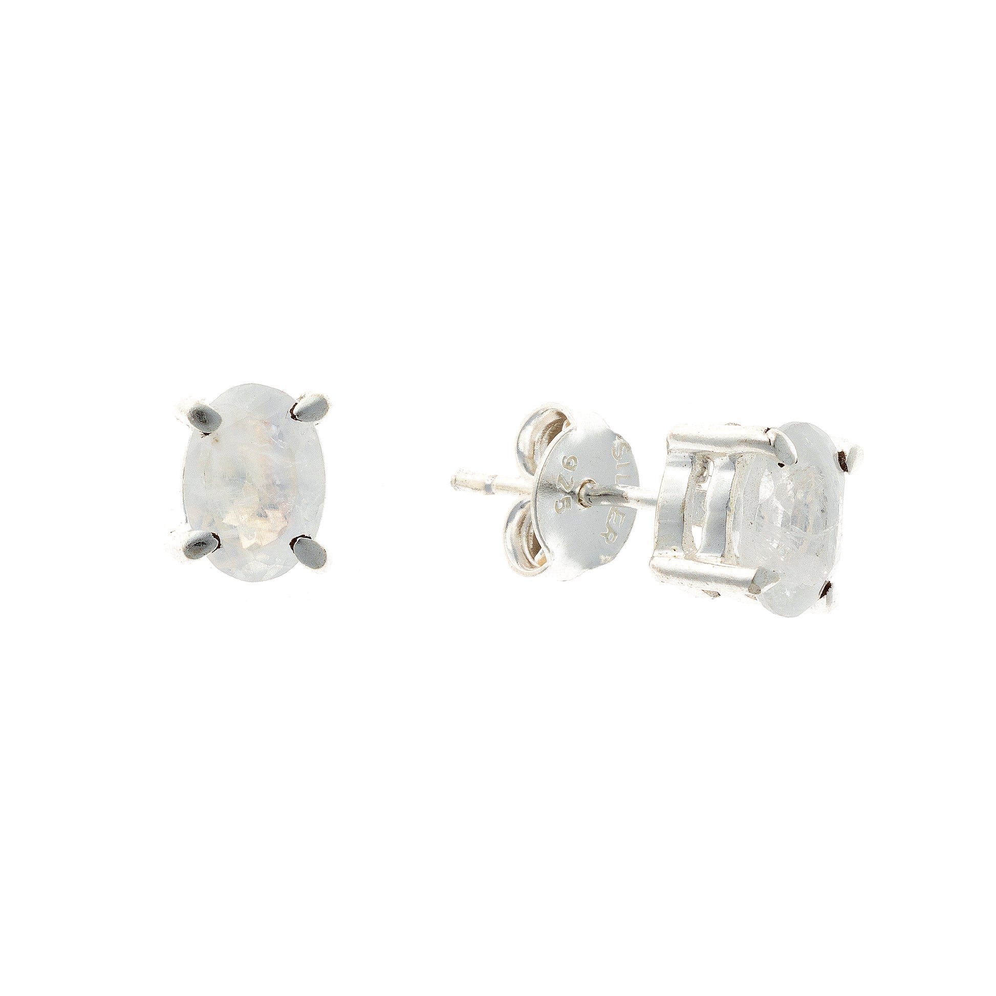 Sidabriniai auskarai su ovaliu mėnulio akmeniu