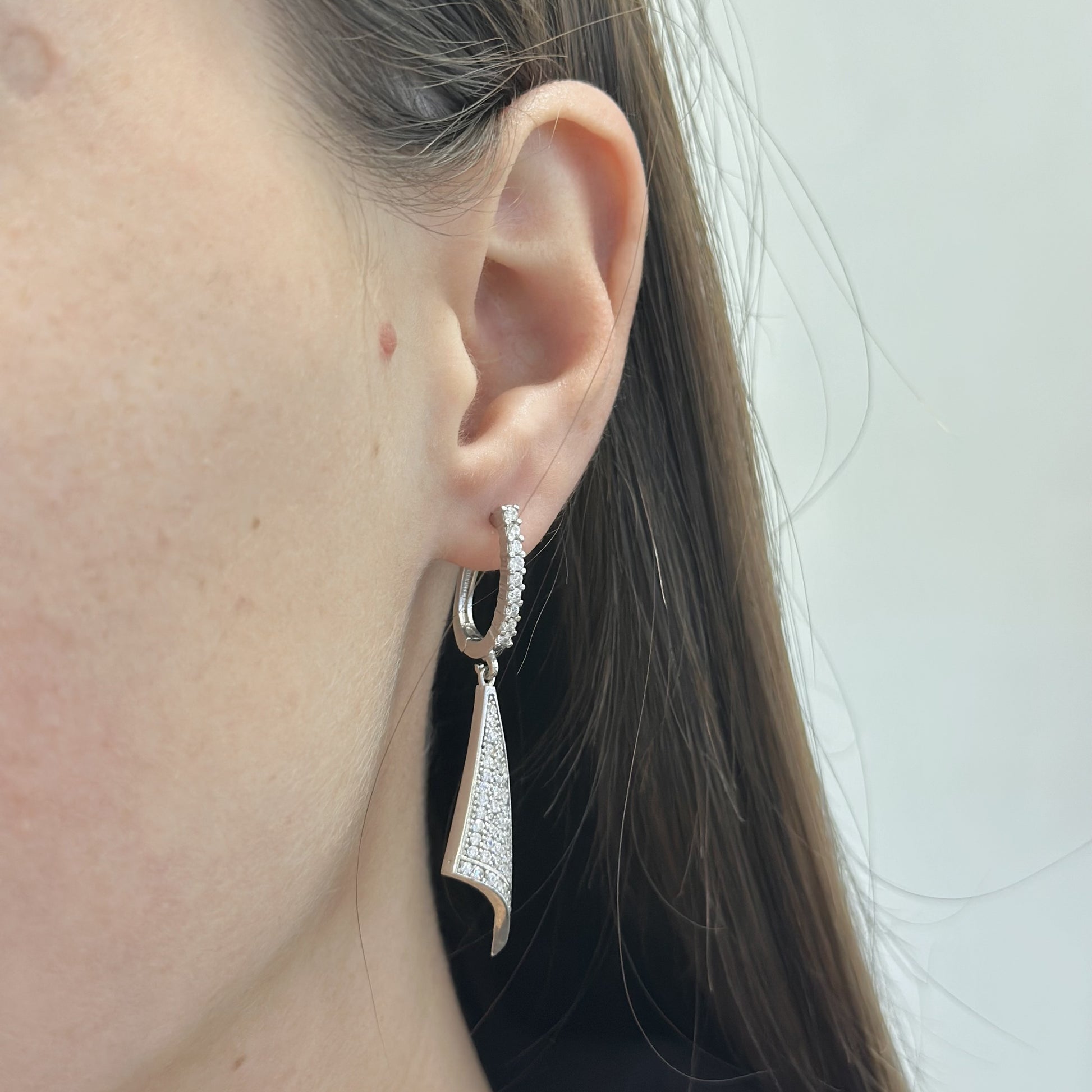 Sidabriniai kabantys auskarai su cirkoniais