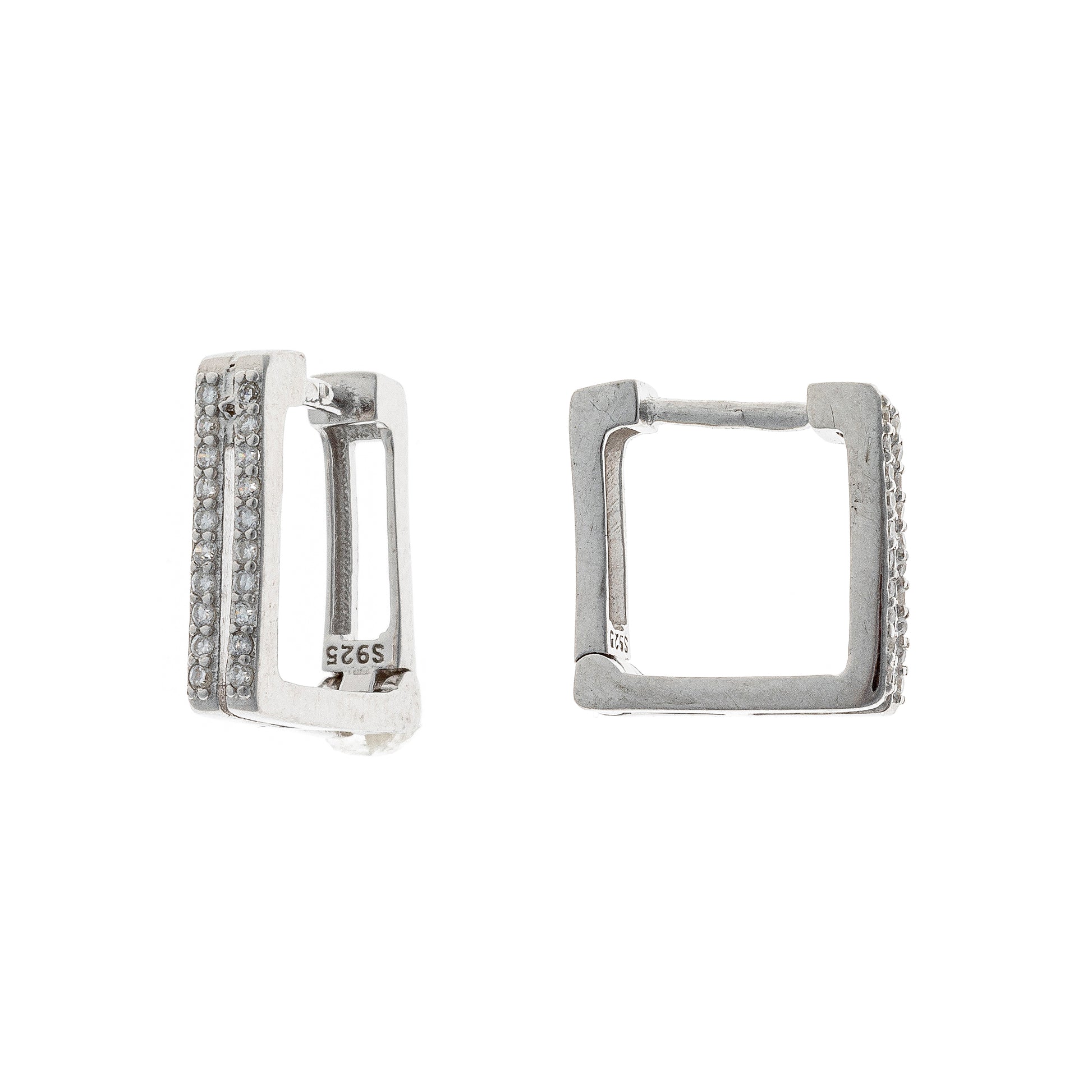 Sidabriniai rodžiuoti auskarai su cirkoniais "Square"