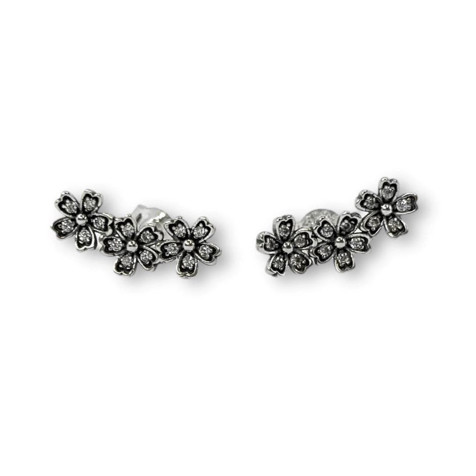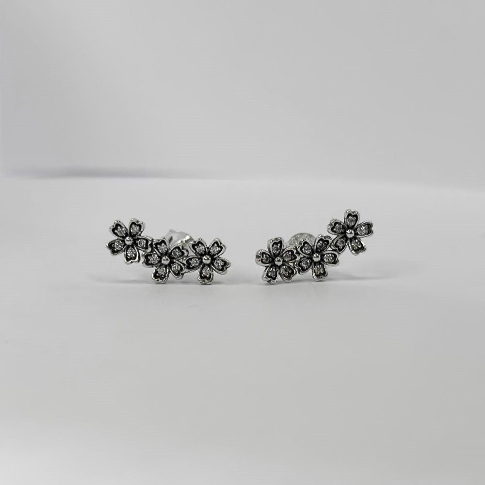 Sidabriniai rodžiuoti auskarai su cirkoniu "Gėlytės"