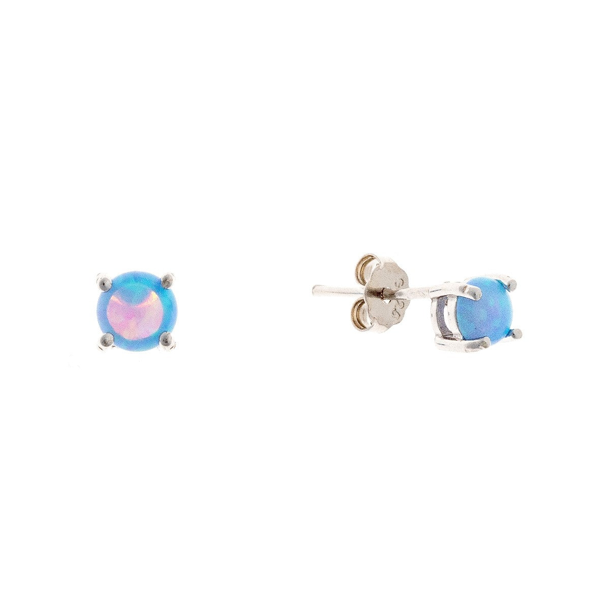 Sidabriniai rodžiuoti auskarai su žydru sintetiniu opalu