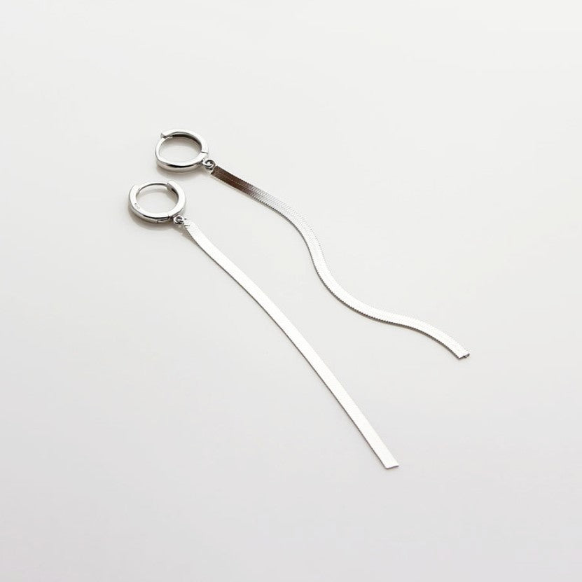Sidabriniai rodžiuoti kabantys auskarai su grandinėle