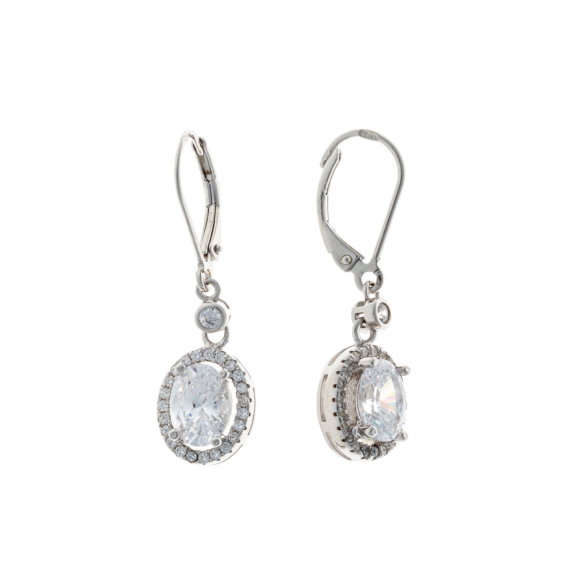 Sidabriniai rodžiuoti kabantys auskarai su ovaliu cirkoniu