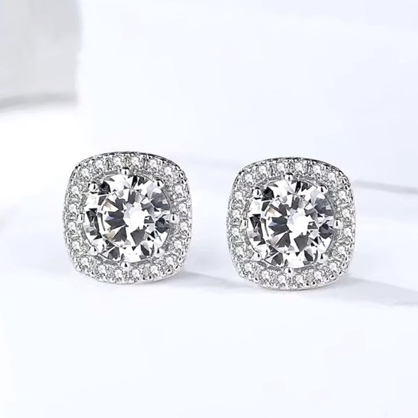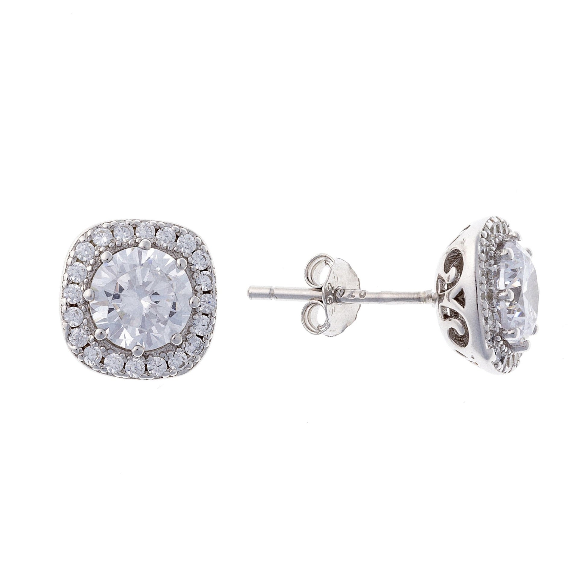 Sidabriniai rodžiuoti kvadratiniai auskarai su cirkoniais