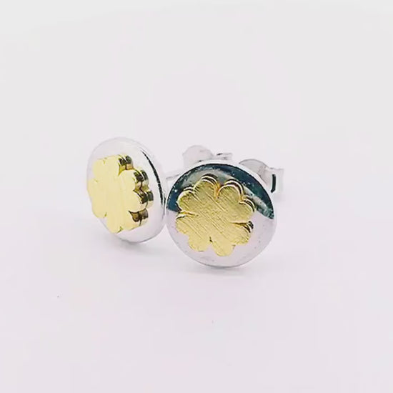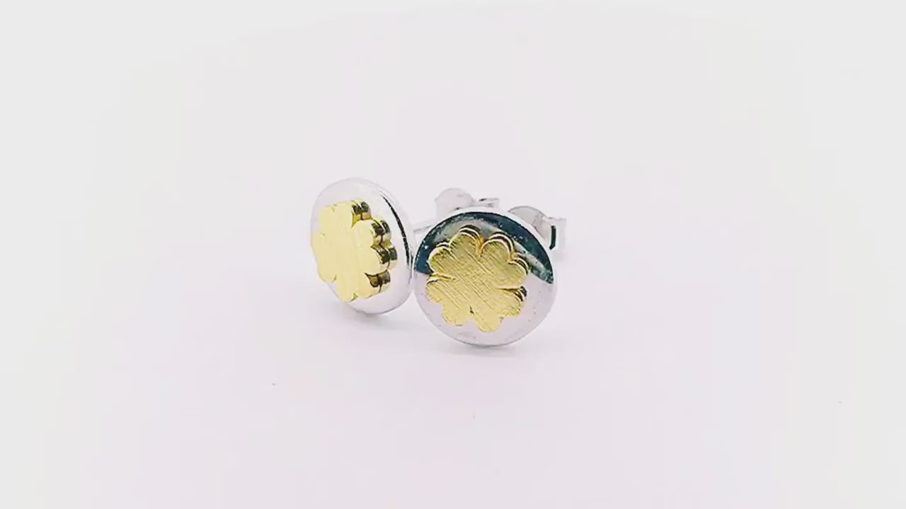 Auskarai dengti rodžiu (platinos grupės metalas). Dobilo padengimas: gelsvu auksu.