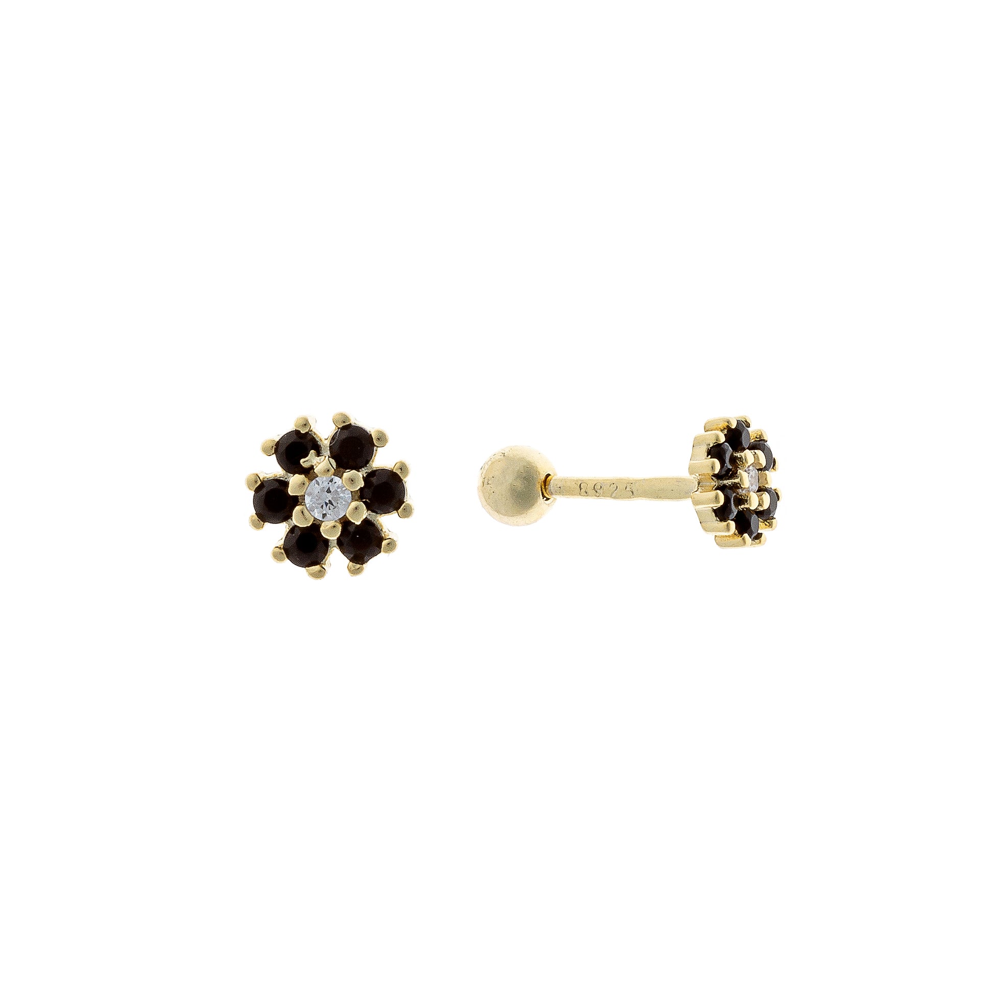 Sidabriniai užsukami auskarai su juodu cirkoniu