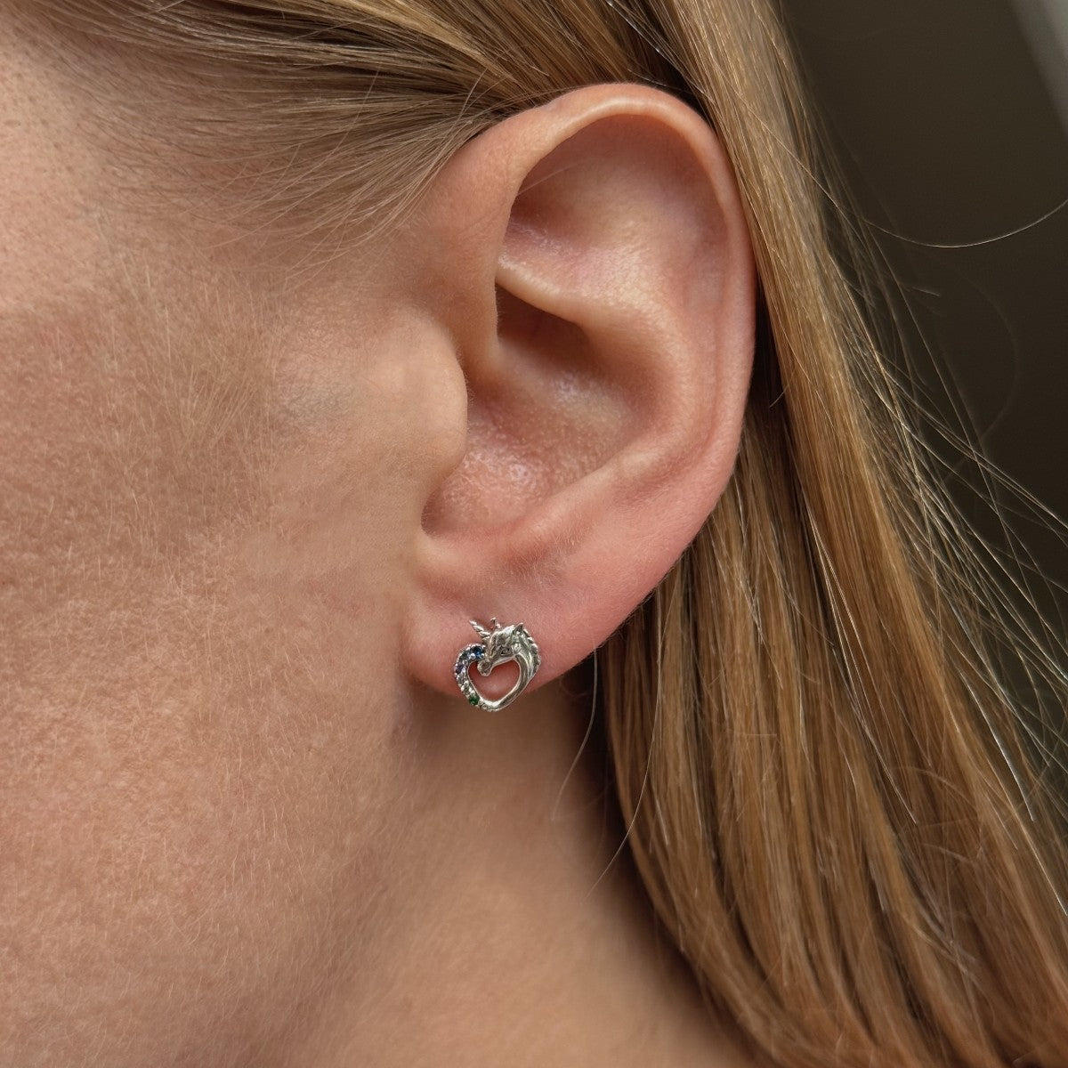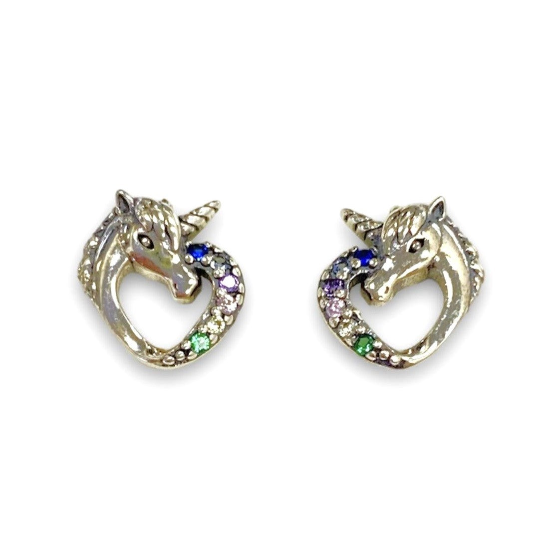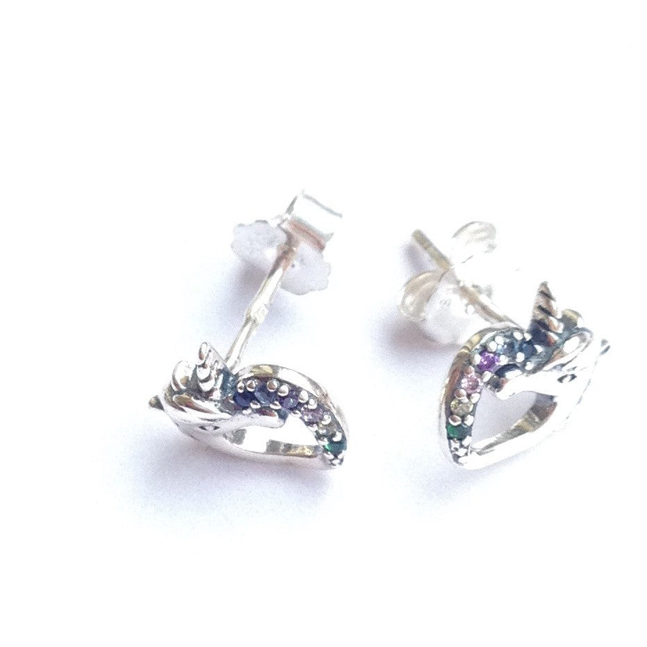 Sidabriniai vienaragiai su spalvotais cirkoniais