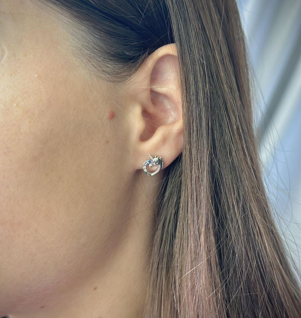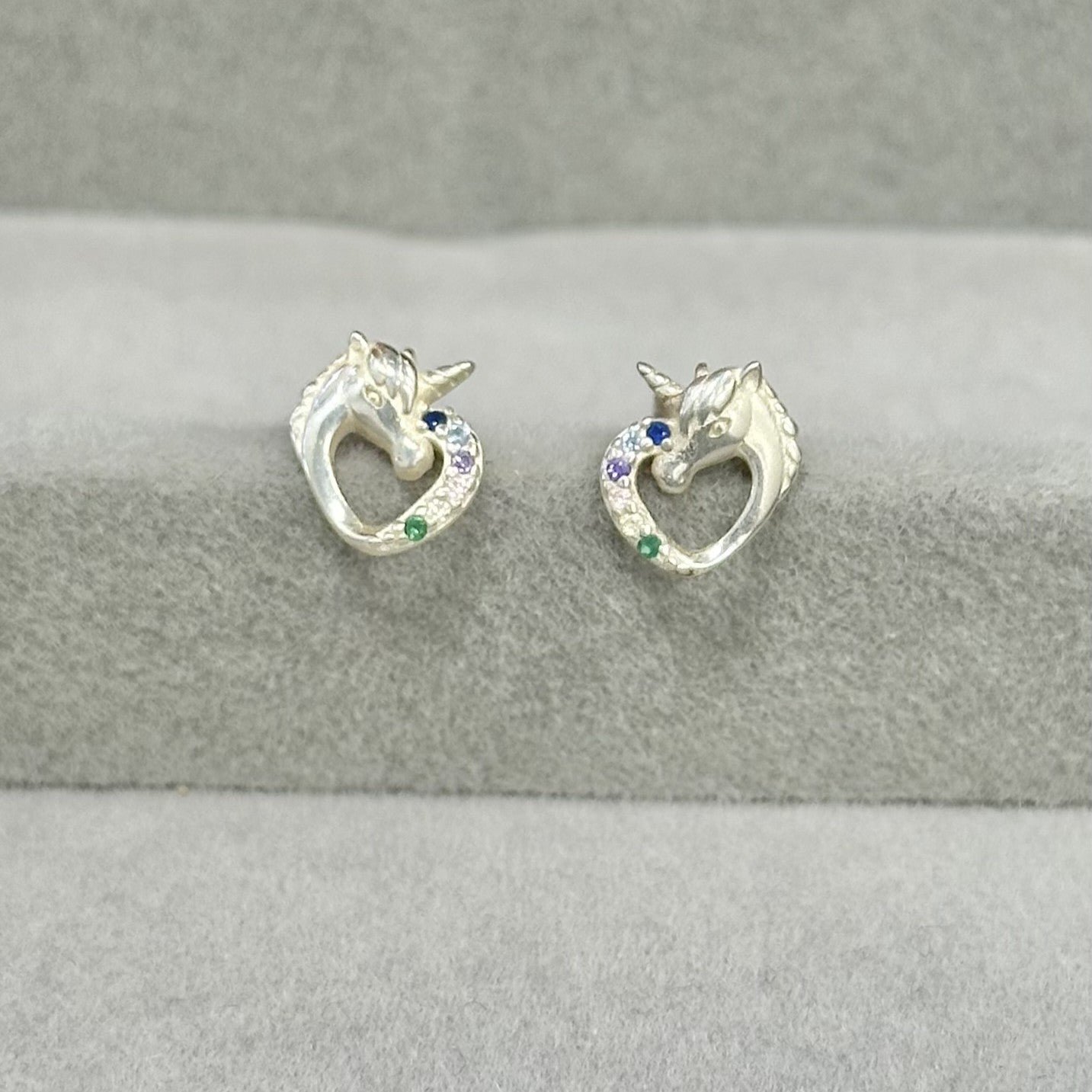 Sidabriniai vienaragiai su spalvotais cirkoniais