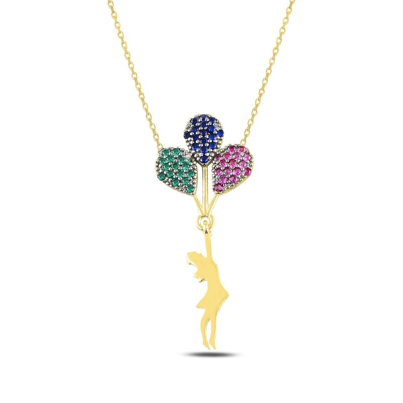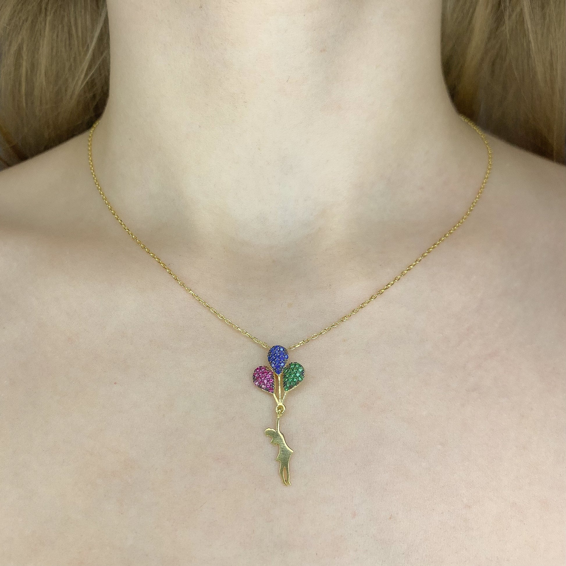Sidabrinis auksuotas pakabukas "Lady with Balloons" su grandinėle