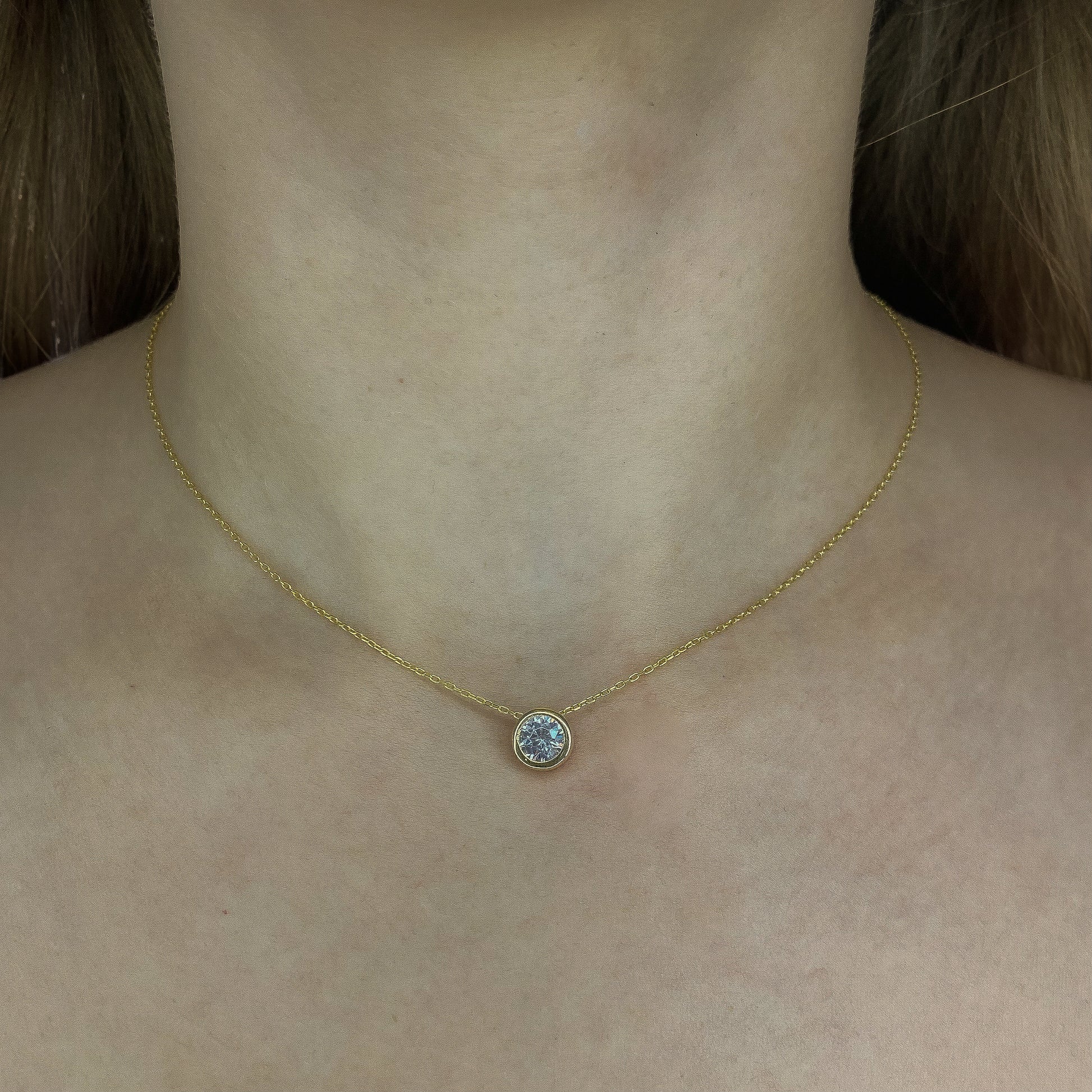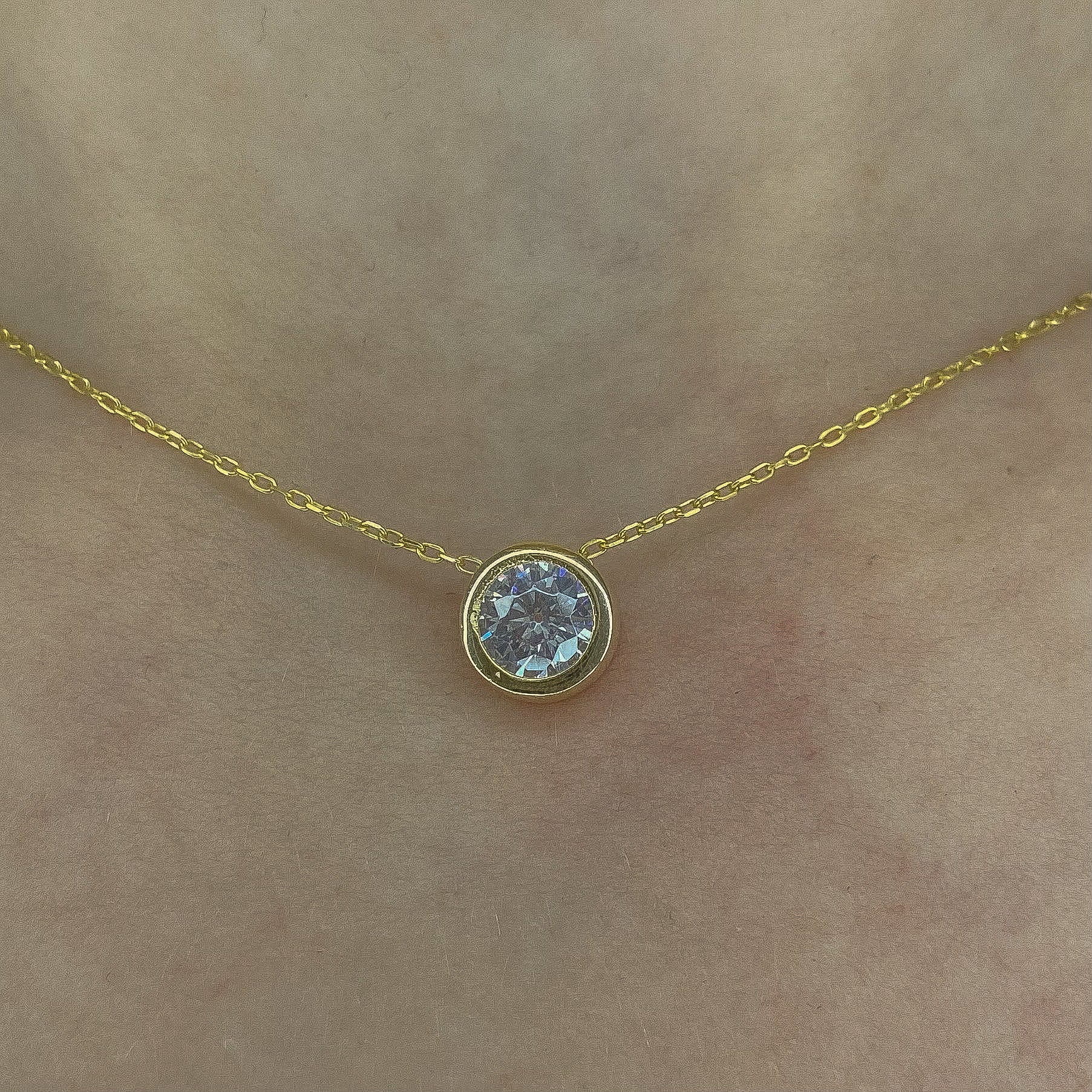Sidabrinis auksuotas pakabukas su cirkonio akute ir grandinėle