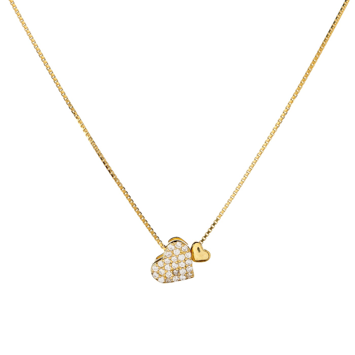 Sidabrinis auksuotas pakabukas su širdelėmis ir grandinėle