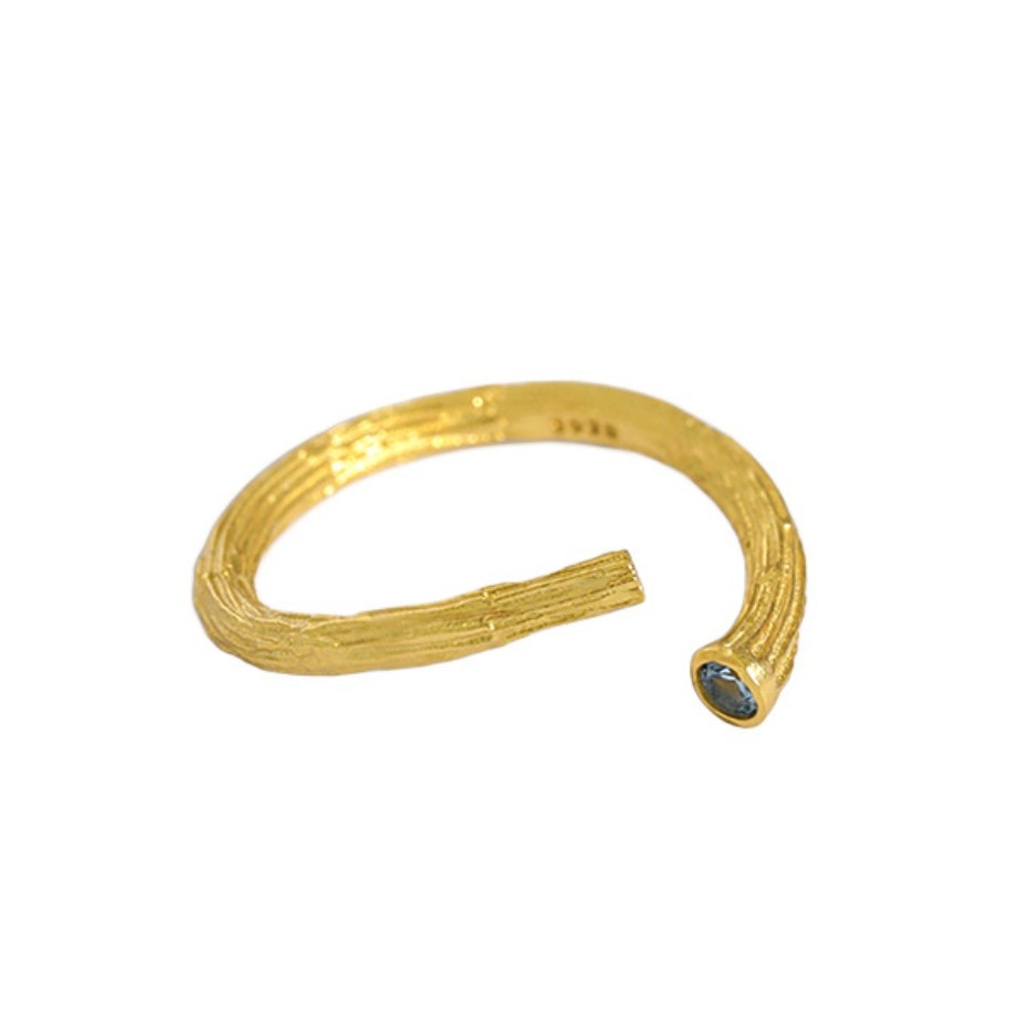 Sidabrinis auksuotas reguliuojamo dydžio žiedas su žydra cirkonio akute