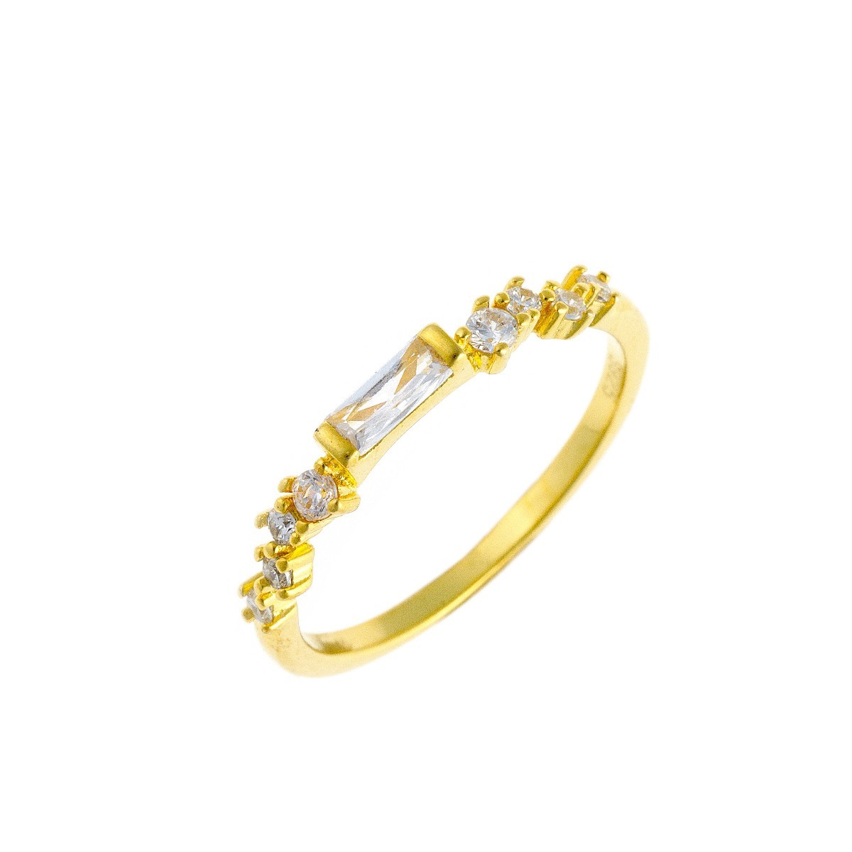 Sidabrinis auksuotas žiedas su pailgu cirkoniu