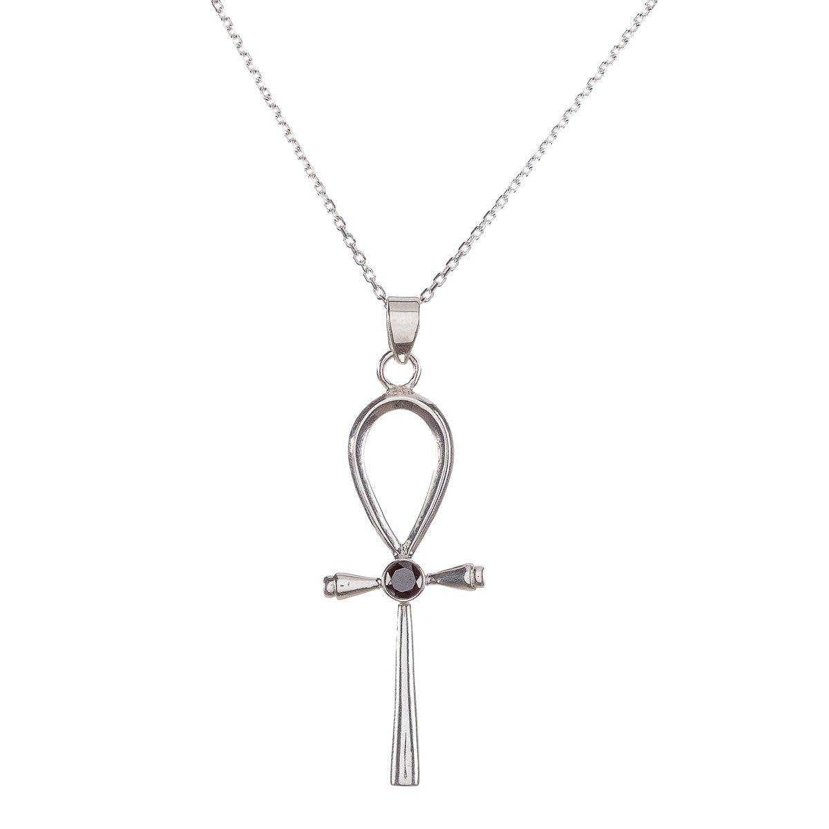 Sidabrinis kryželis su onikso akmeniu ir grandinėle