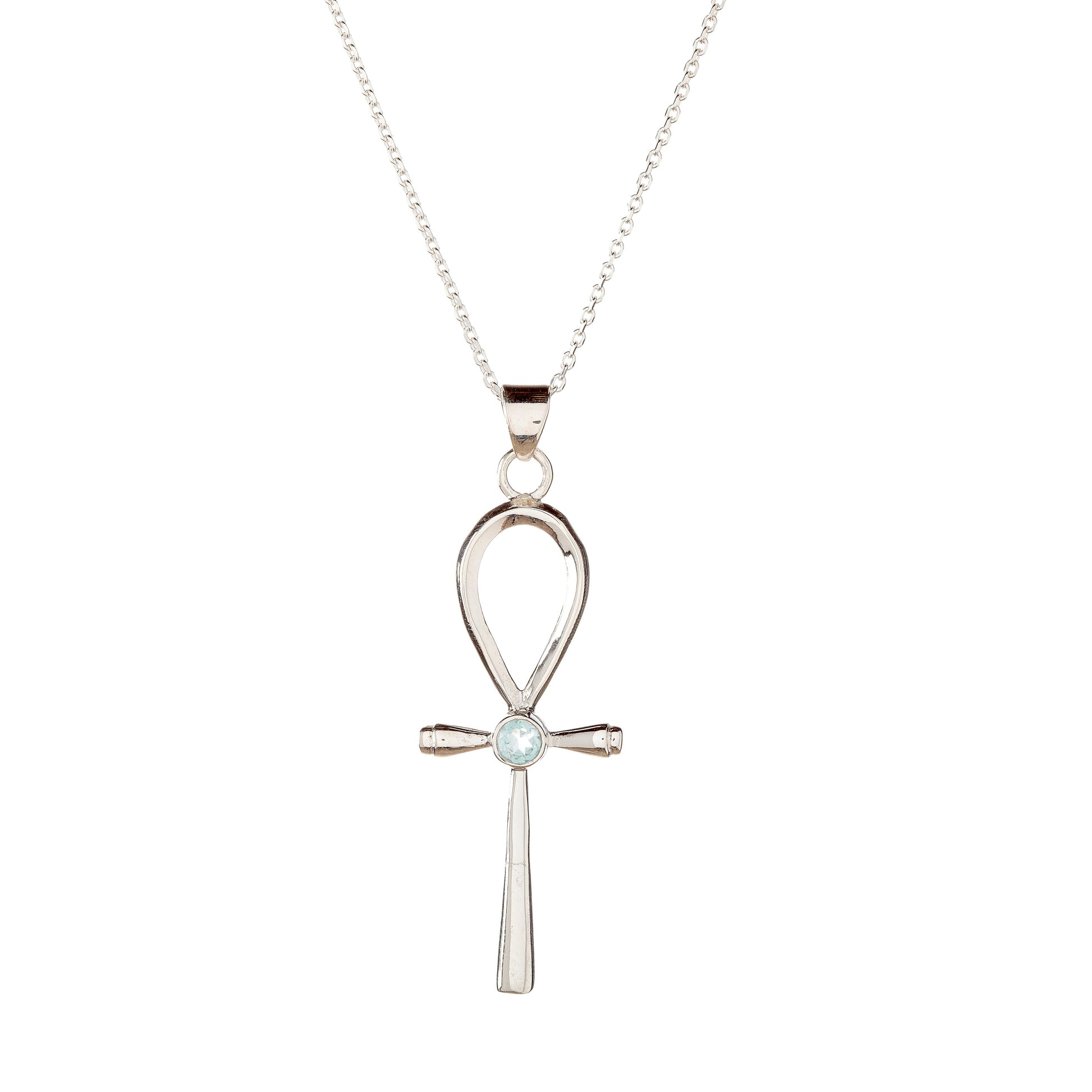 Sidabrinis kryželis su topazo akmeniu ir grandinėle
