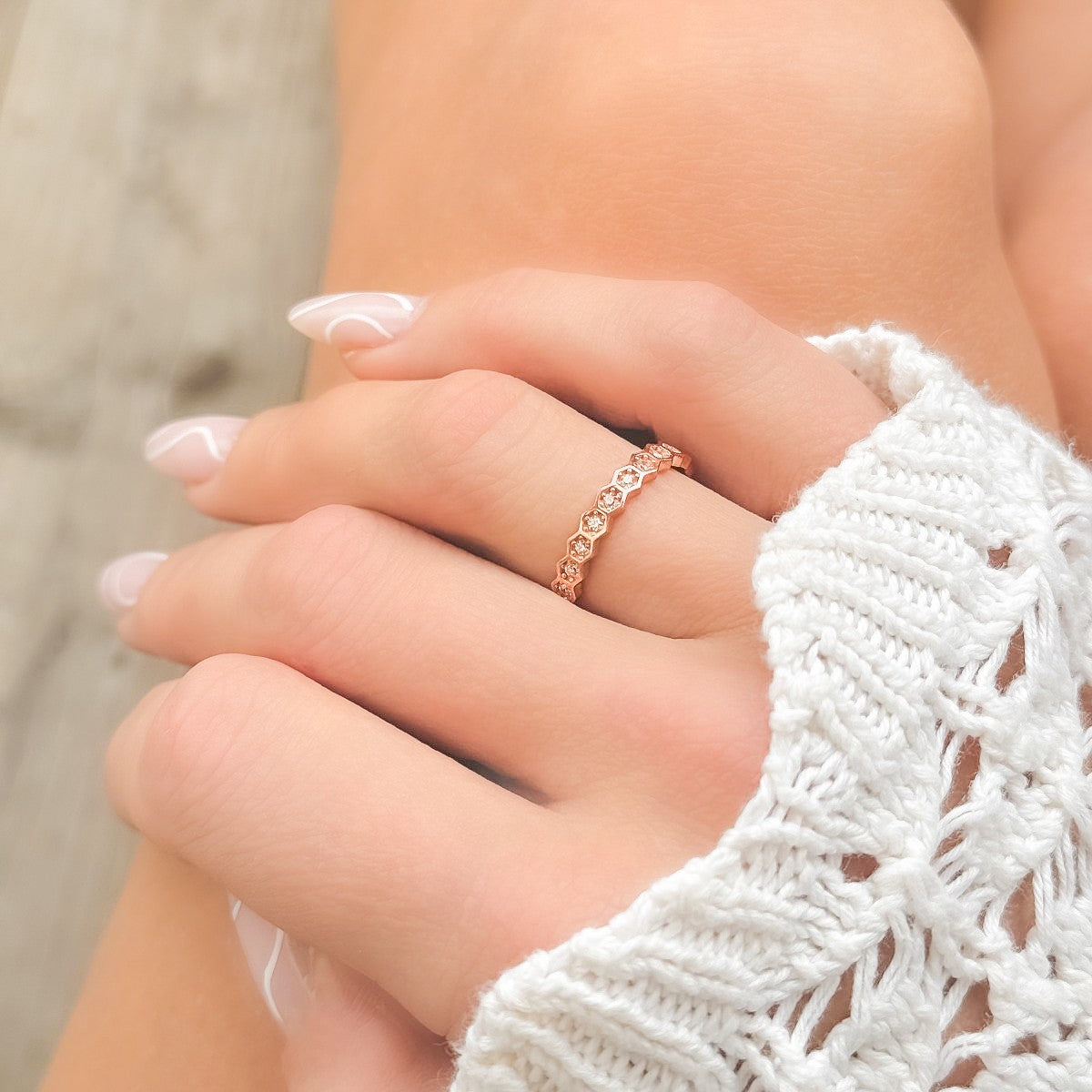 Sidabrinis paauksuotas žiedas su 15 mažų cirkonių