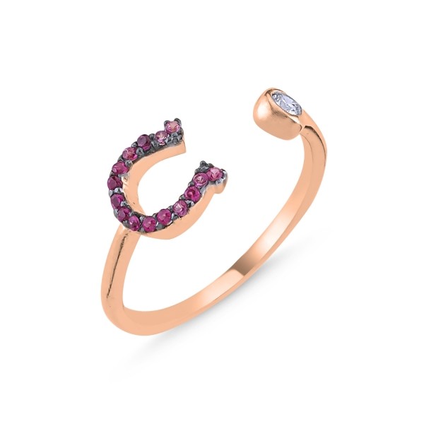 Sidabrinis paauksuotas žiedas su rausva pasagėle reg. dydžio