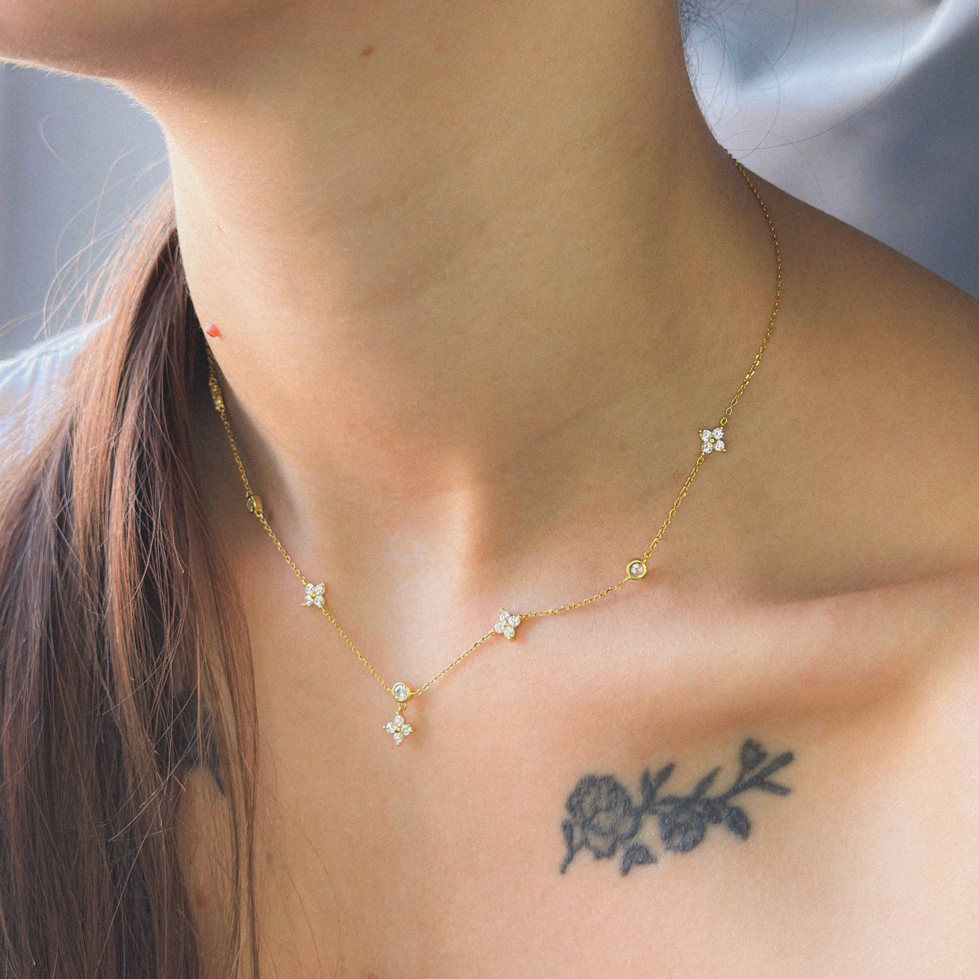 Sidabrinis pakabukas "Gėlytės" su cirkoniais ir grandinėle