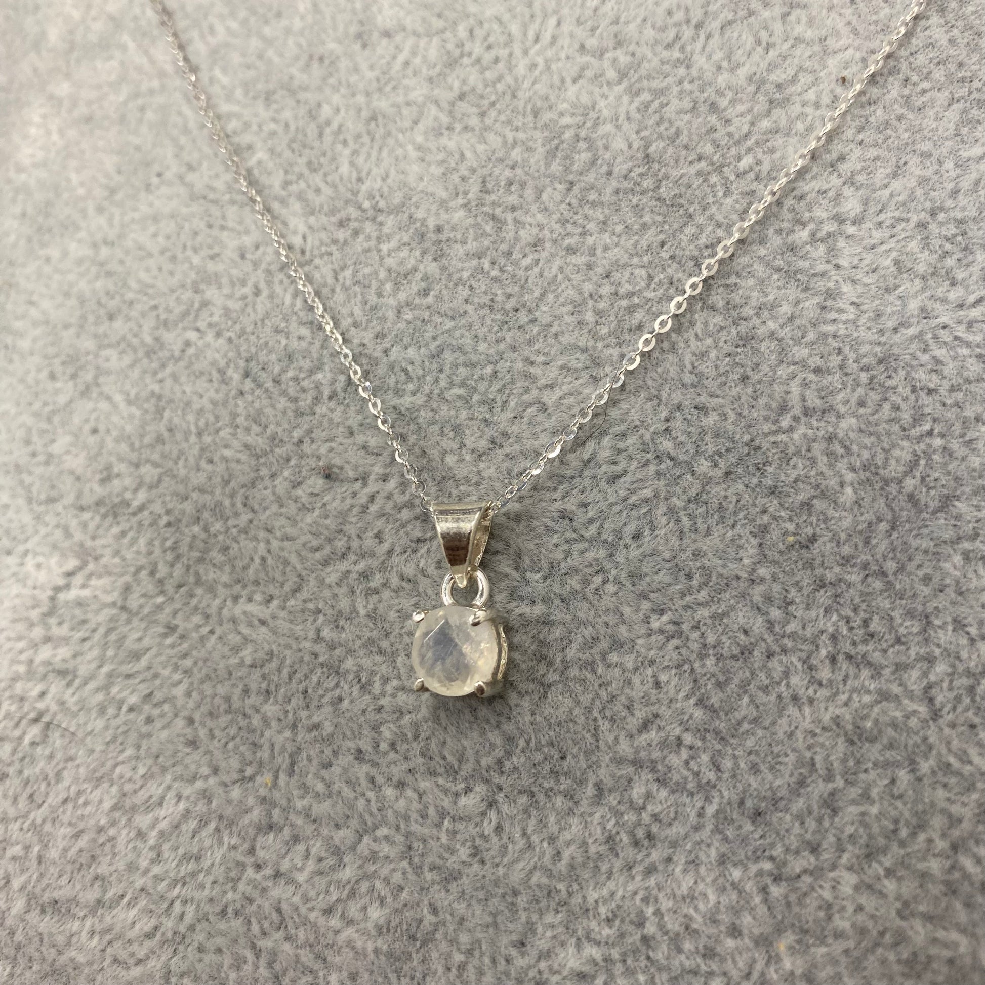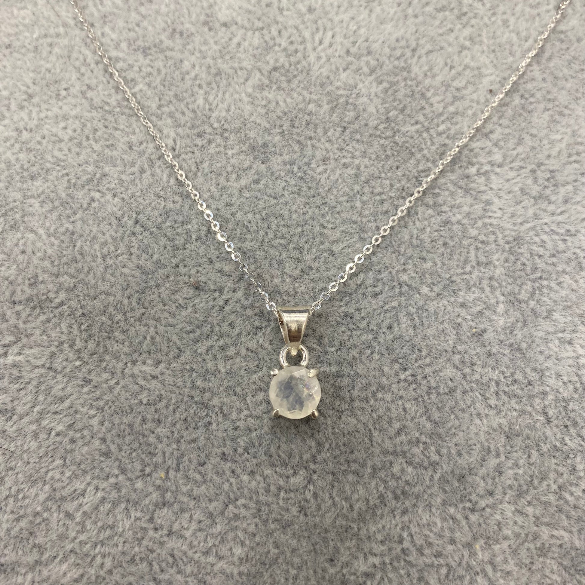 Sidabrinis pakabukas su apvaliu mėnulio akmeniu ir grandinėle