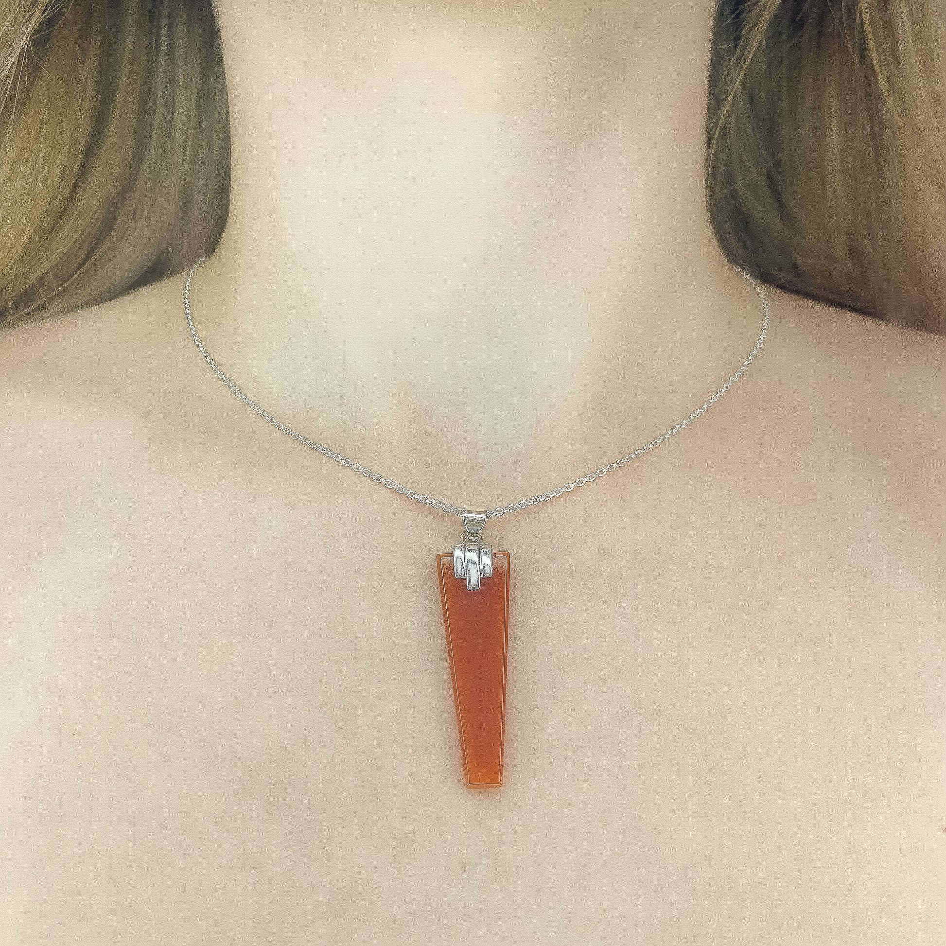 Sidabrinis pakabukas su karneoliu ir grandinėle