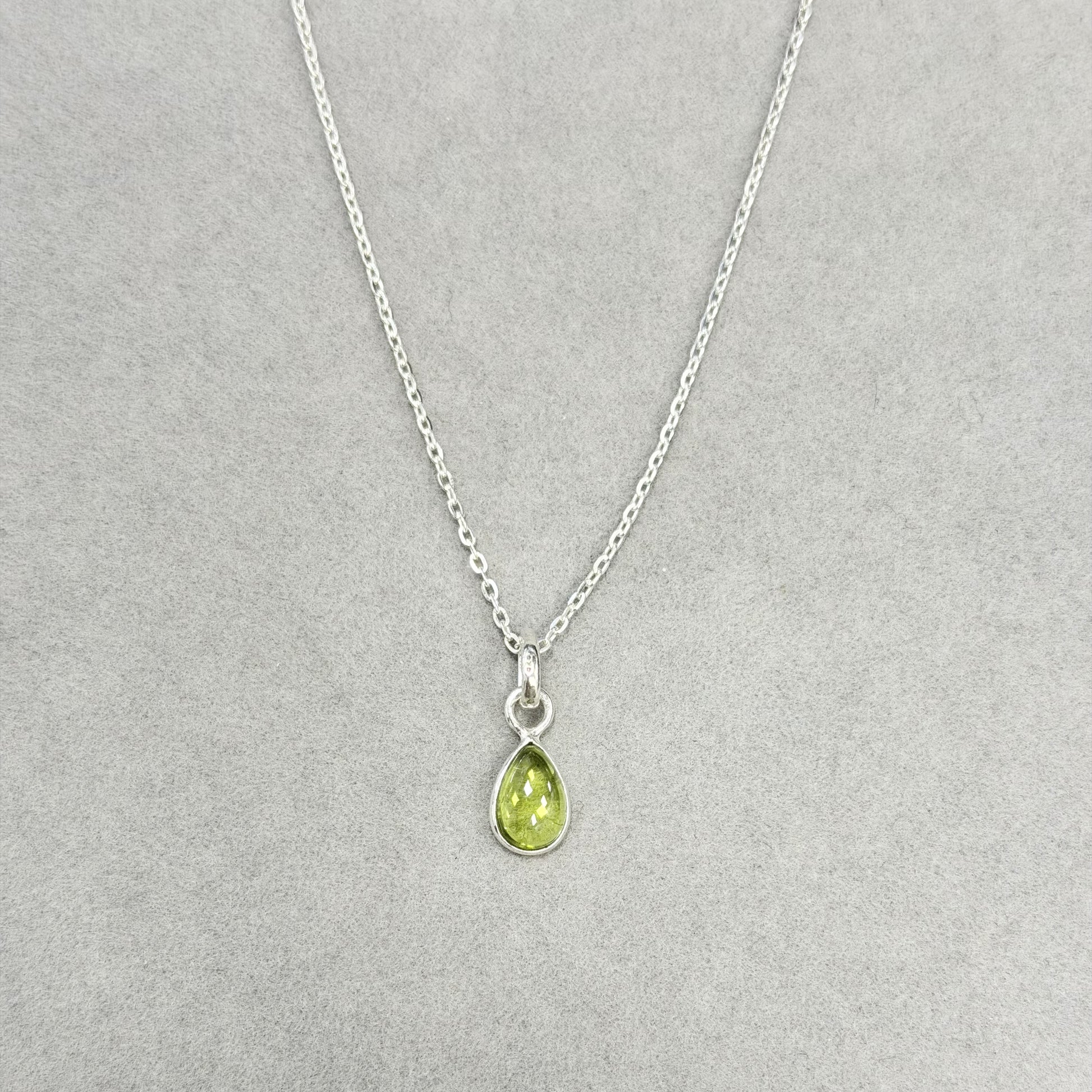 Sidabrinis pakabukas su lašo formos peridotu ir grandinėle