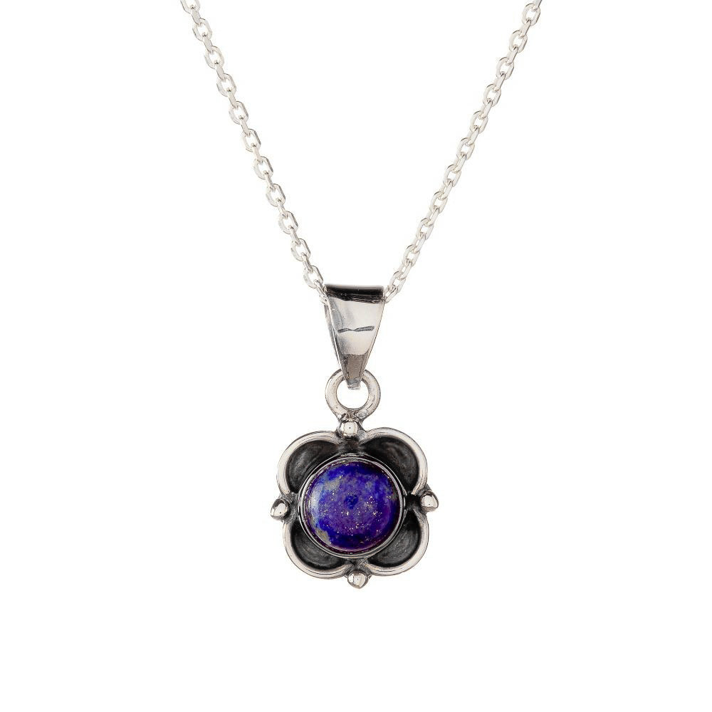 Oksiduoto sidabro pakabukas "Gėlytė" su lazurito akmeniu ir grandinėle