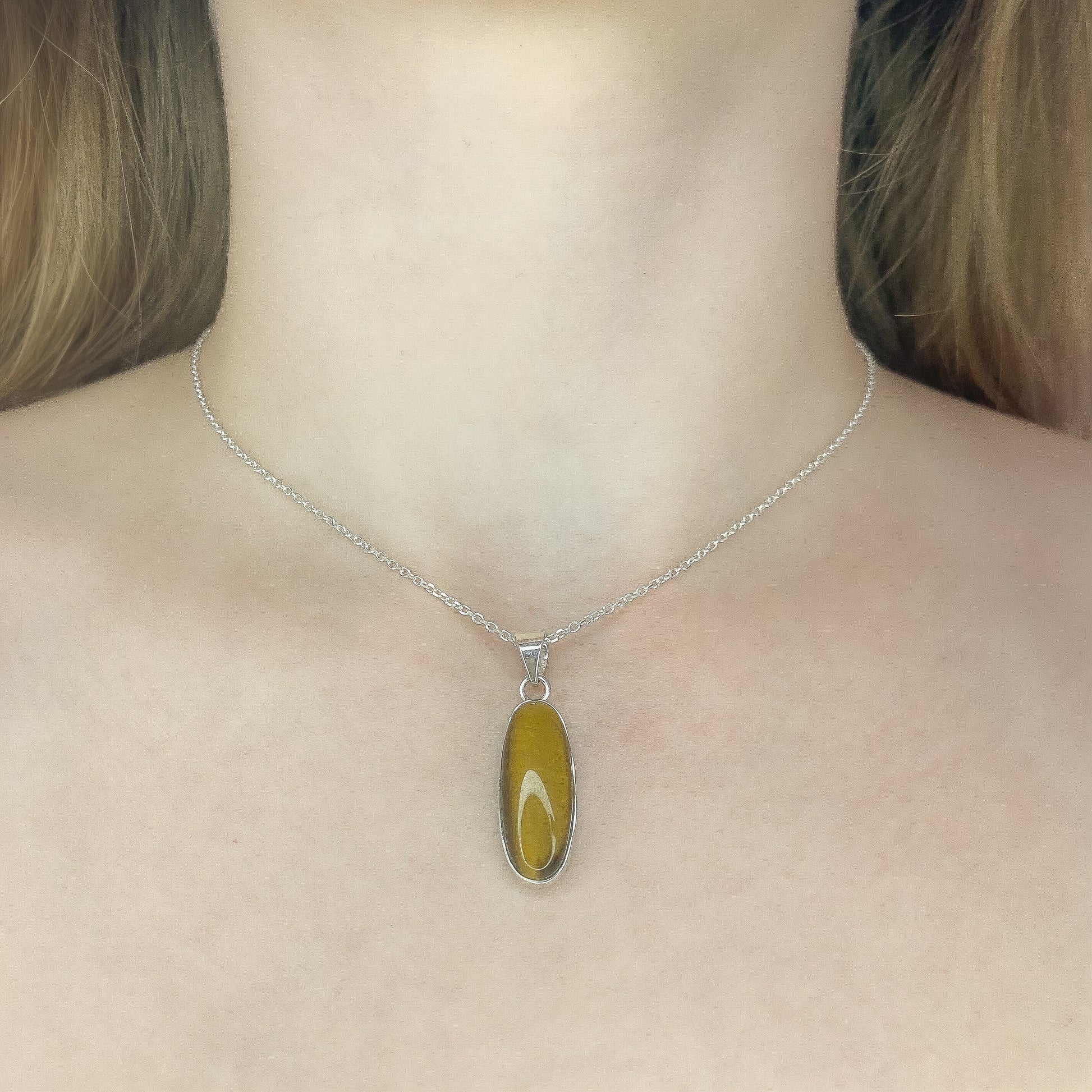 Sidabrinis pakabukas su ovaliu tigro akies akmeniu ir grandinėle
