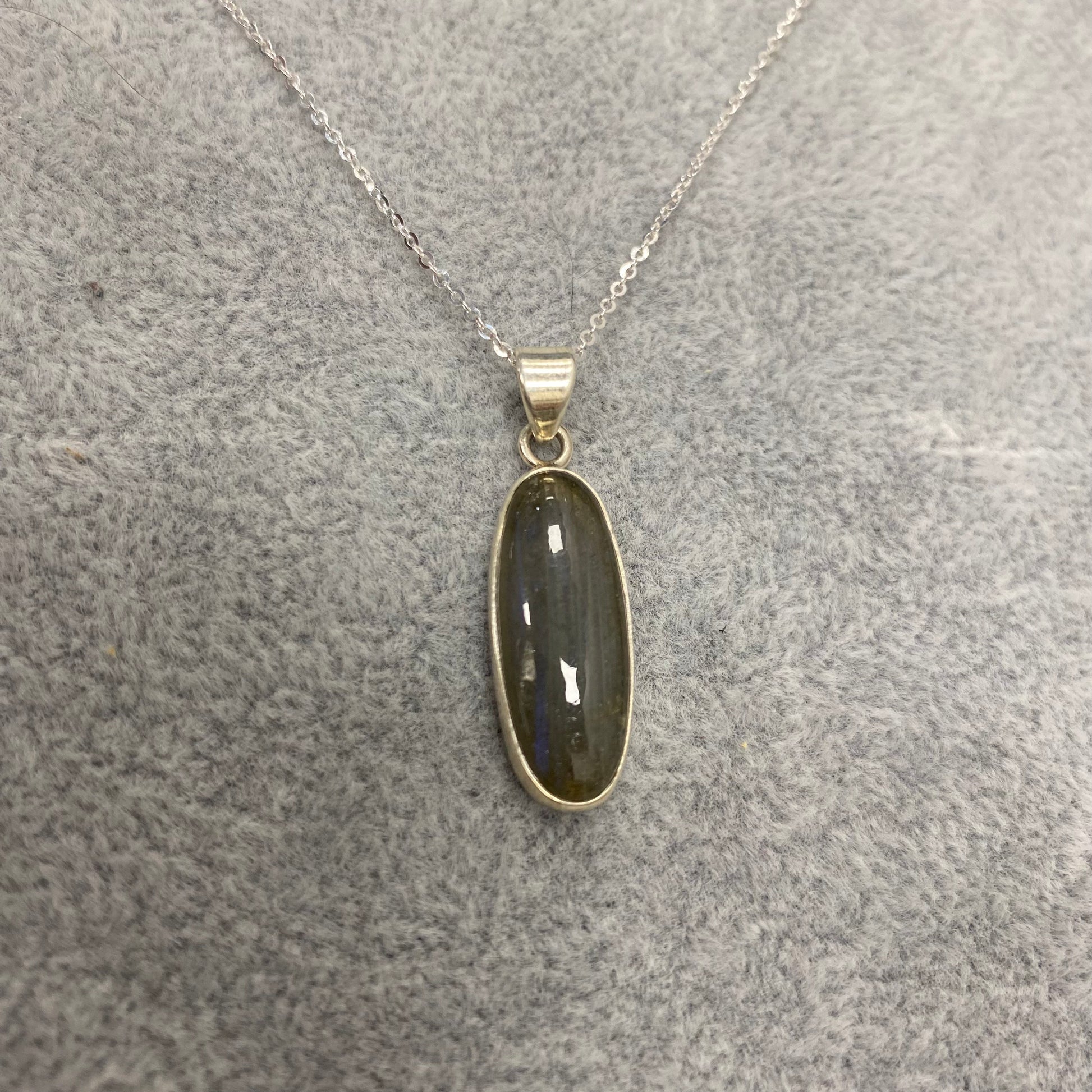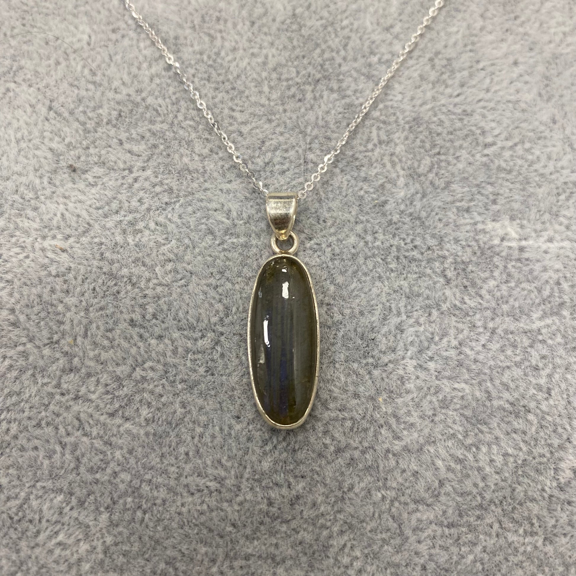Sidabrinis pakabukas su pailgu labradoritu ir grandinėle