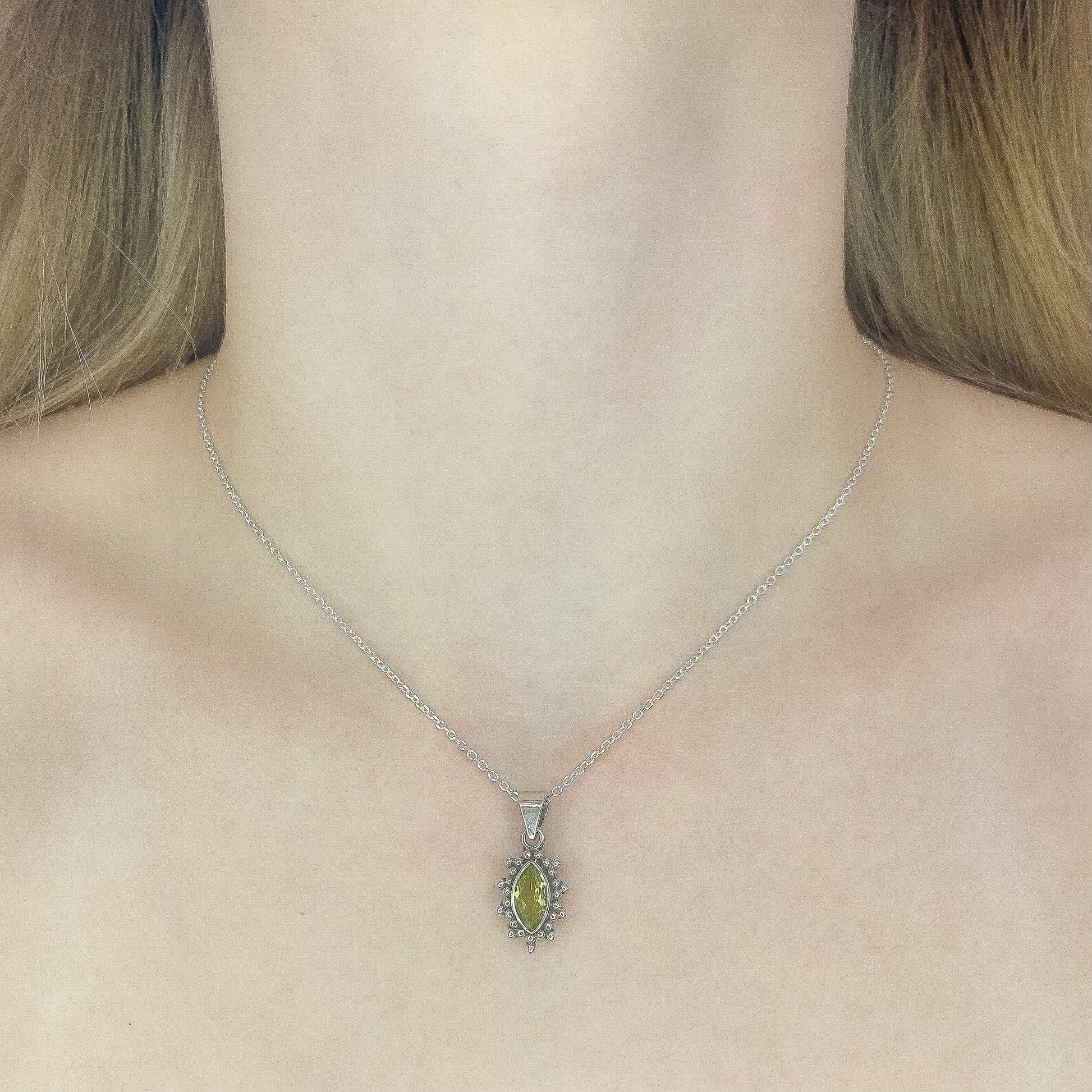Sidabrinis pakabukas su peridotu ir grandinėle