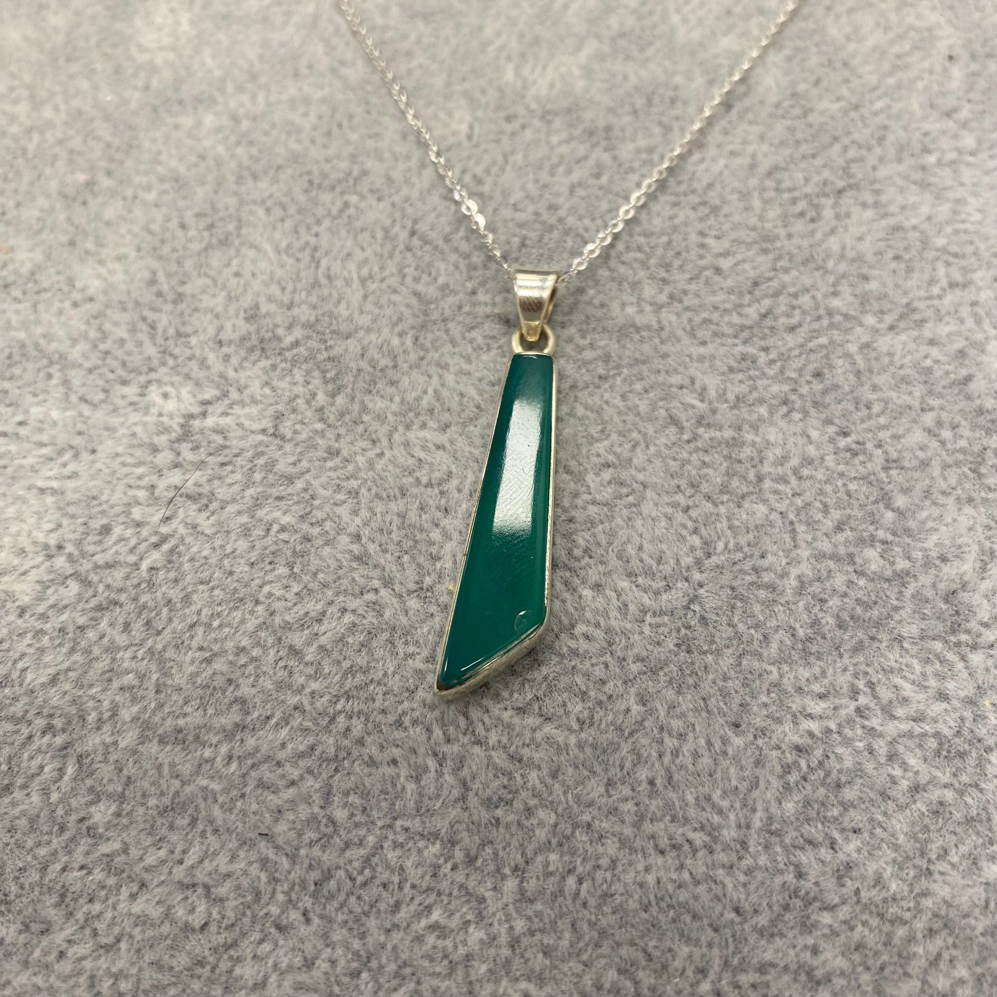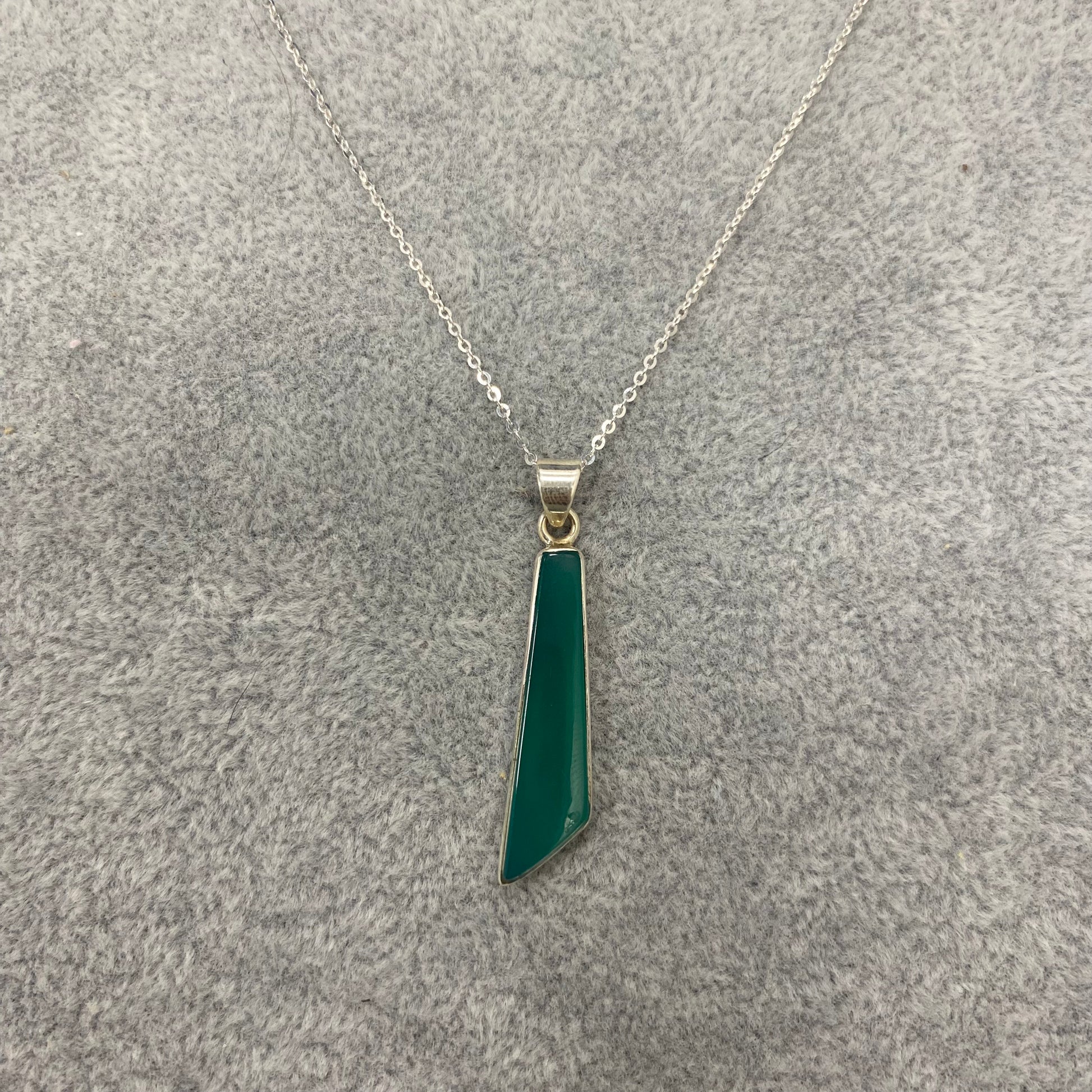 Sidabrinis pakabukas su žaliuoju oniksu ir grandinėle