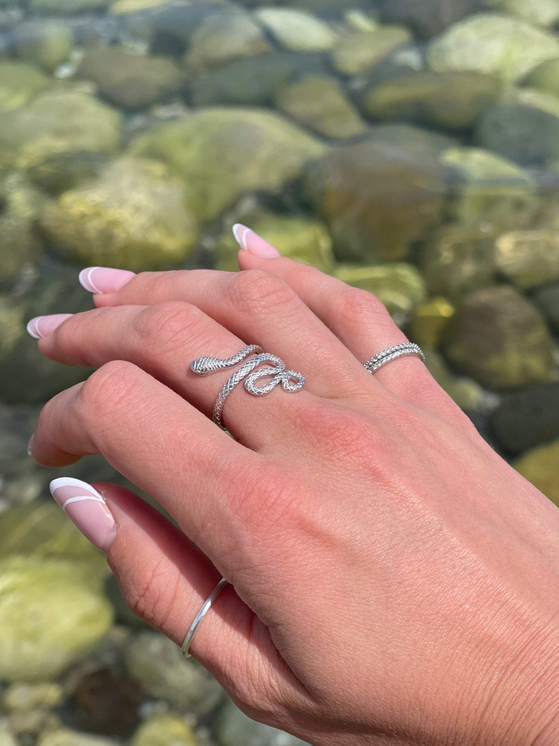 Sidabrinis reguliuojamo dydžio žiedas gyvatėlė