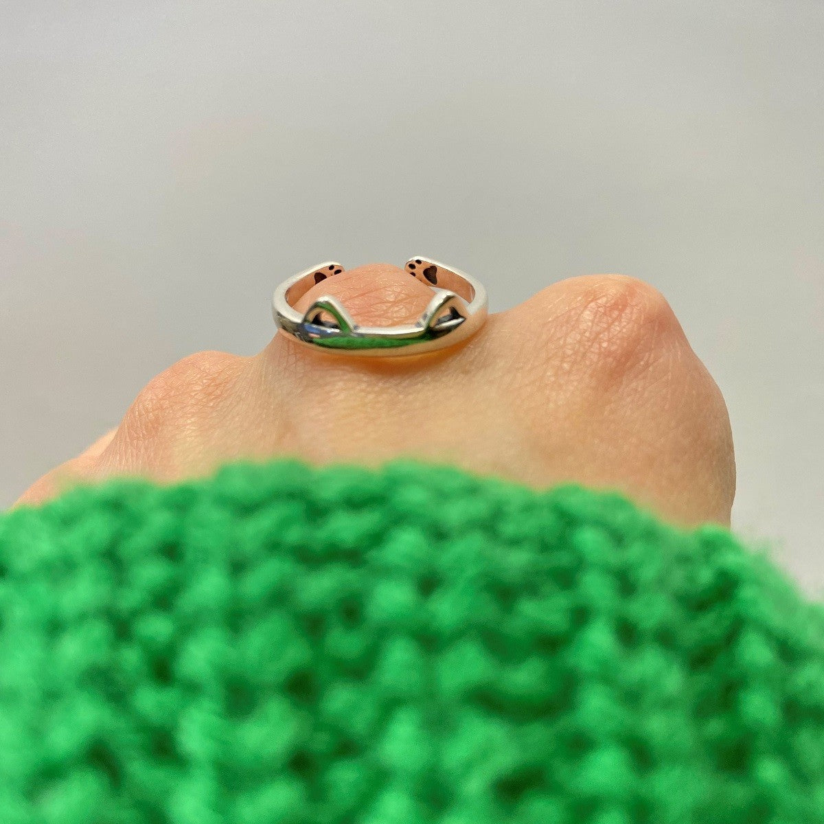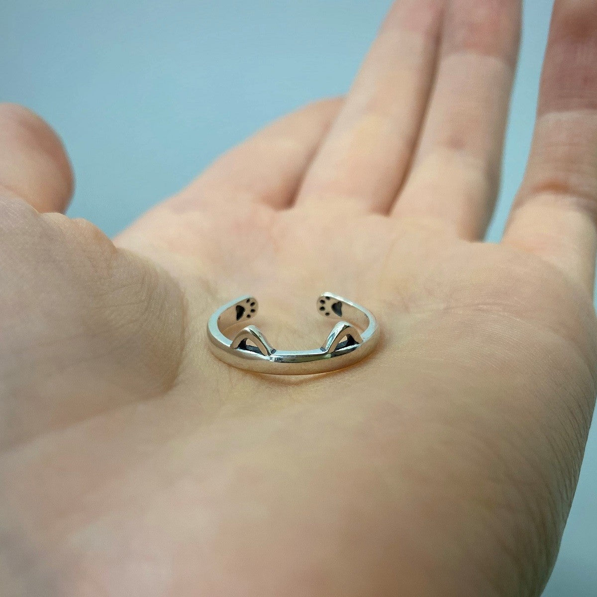 Sidabrinis reguliuojamo dydžio žiedas su ausytėmis
