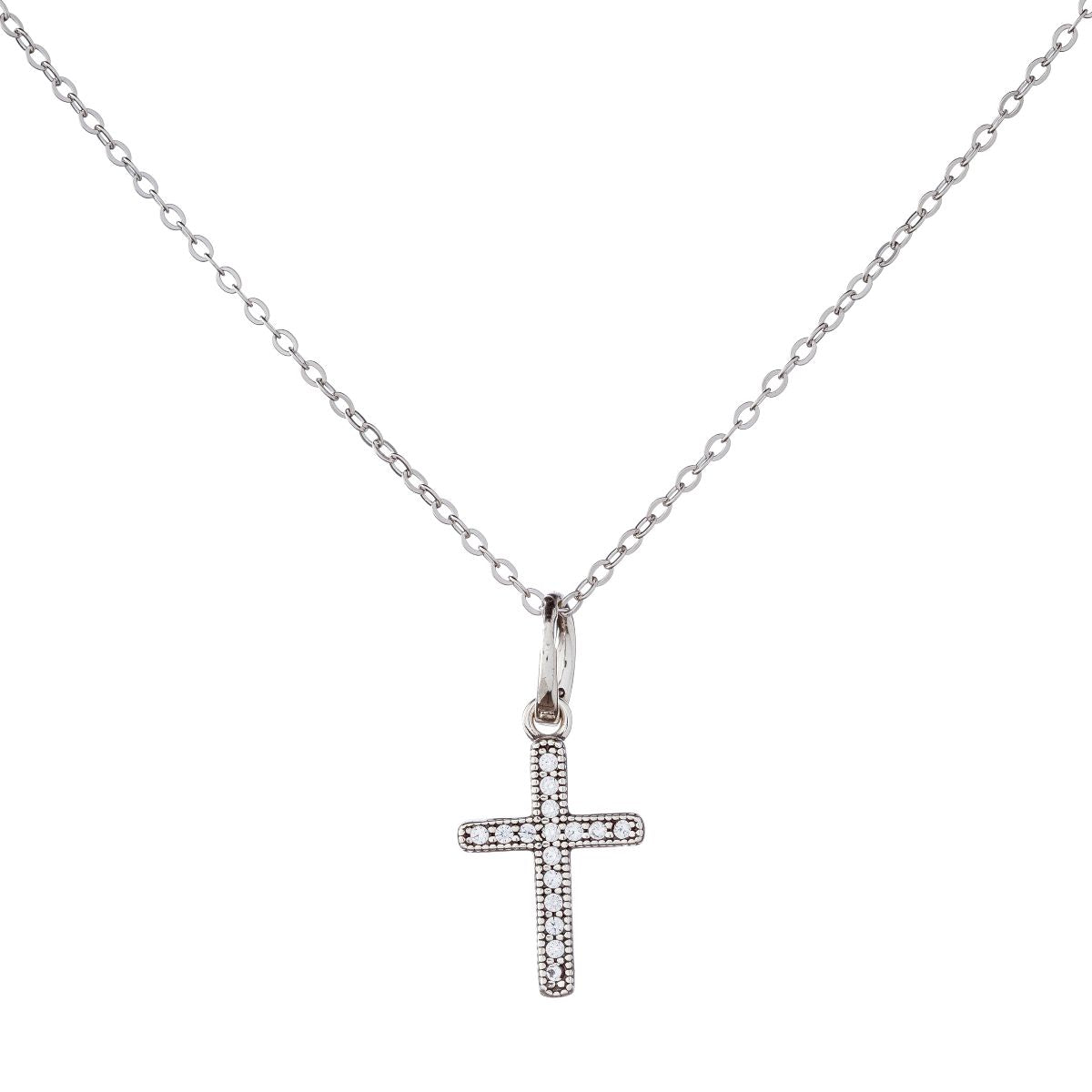Sidabrinis rodžiuotas kryželis su cirkoniais ir grandinėle