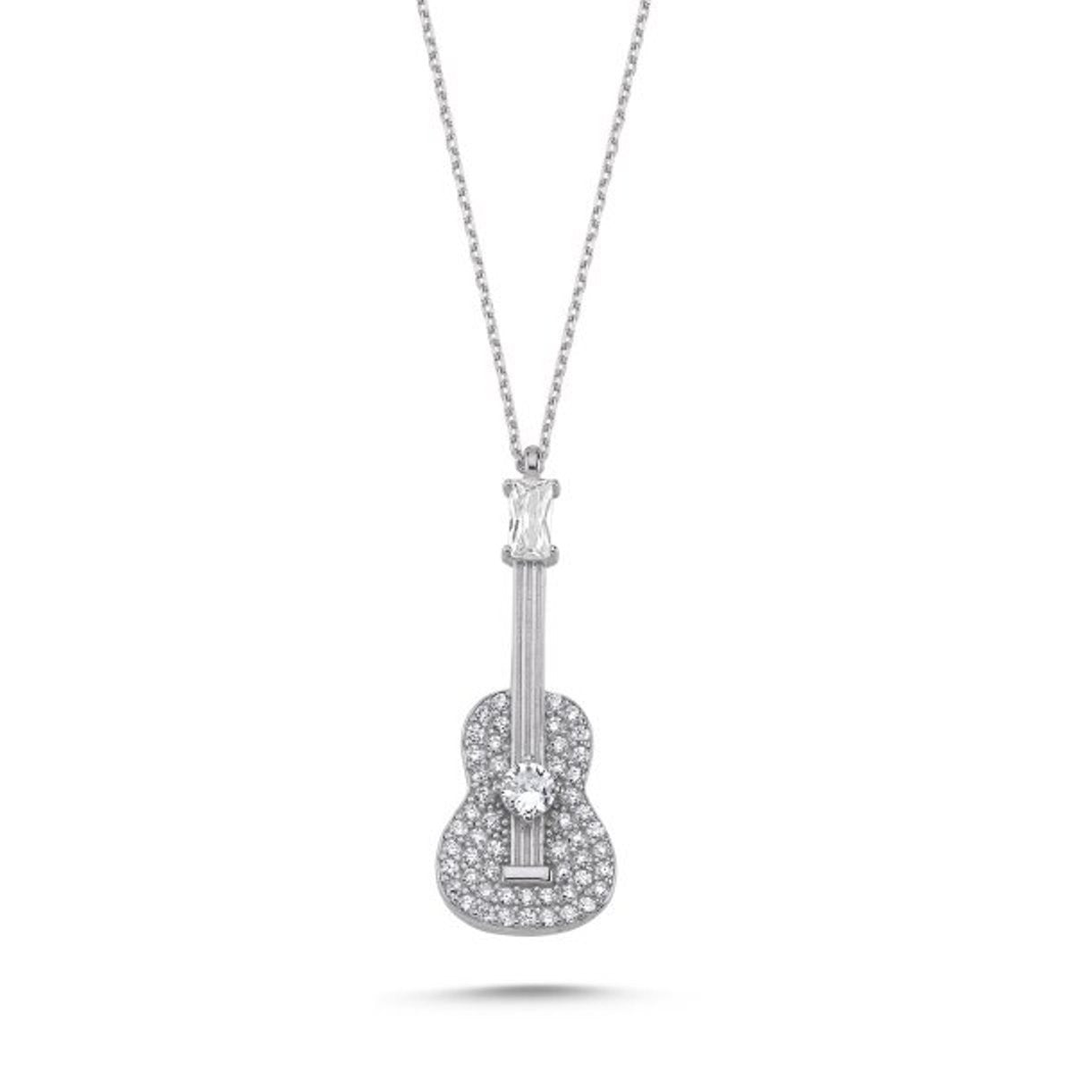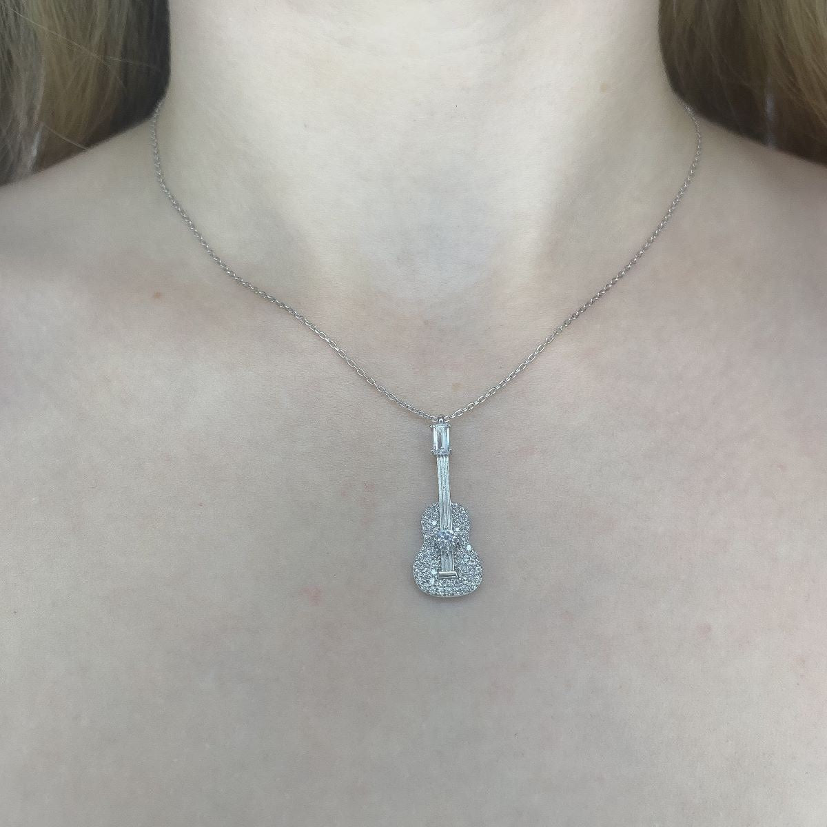 Sidabrinis rodžiuotas pakabukas "Gitara" su cirkoniu ir grandinėle
