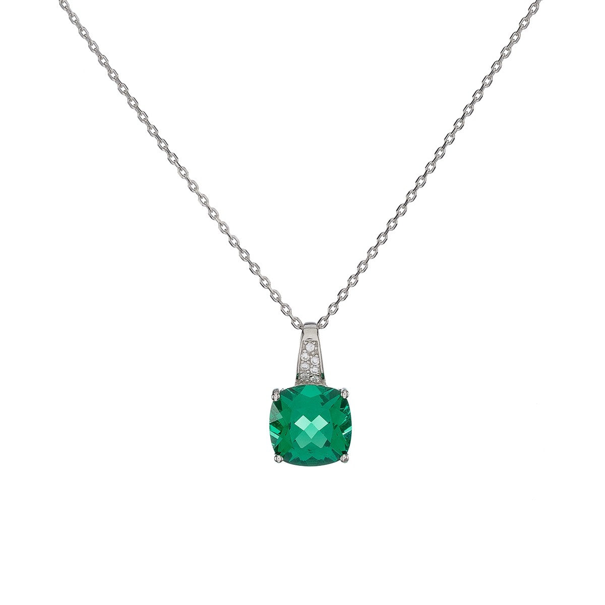Sidabrinis rodžiuotas pakabukas su žaliu cirkoniu ir grandinėle