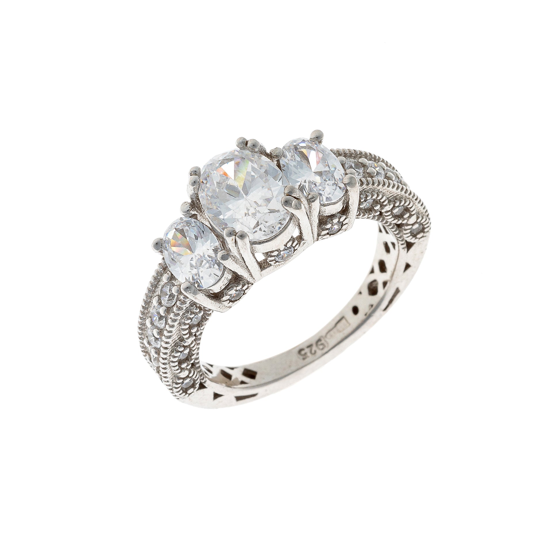 Sidabrinis rodžiuotas žiedas su cirkonio kristalais