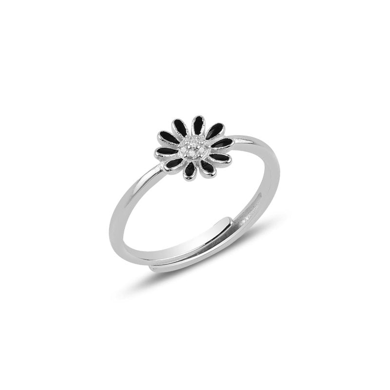 Sidabrinis rodžiuotas žiedas su gėlyte