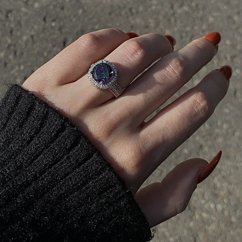 Sidabrinis rodžiuotas žiedas su mistiniu topazu