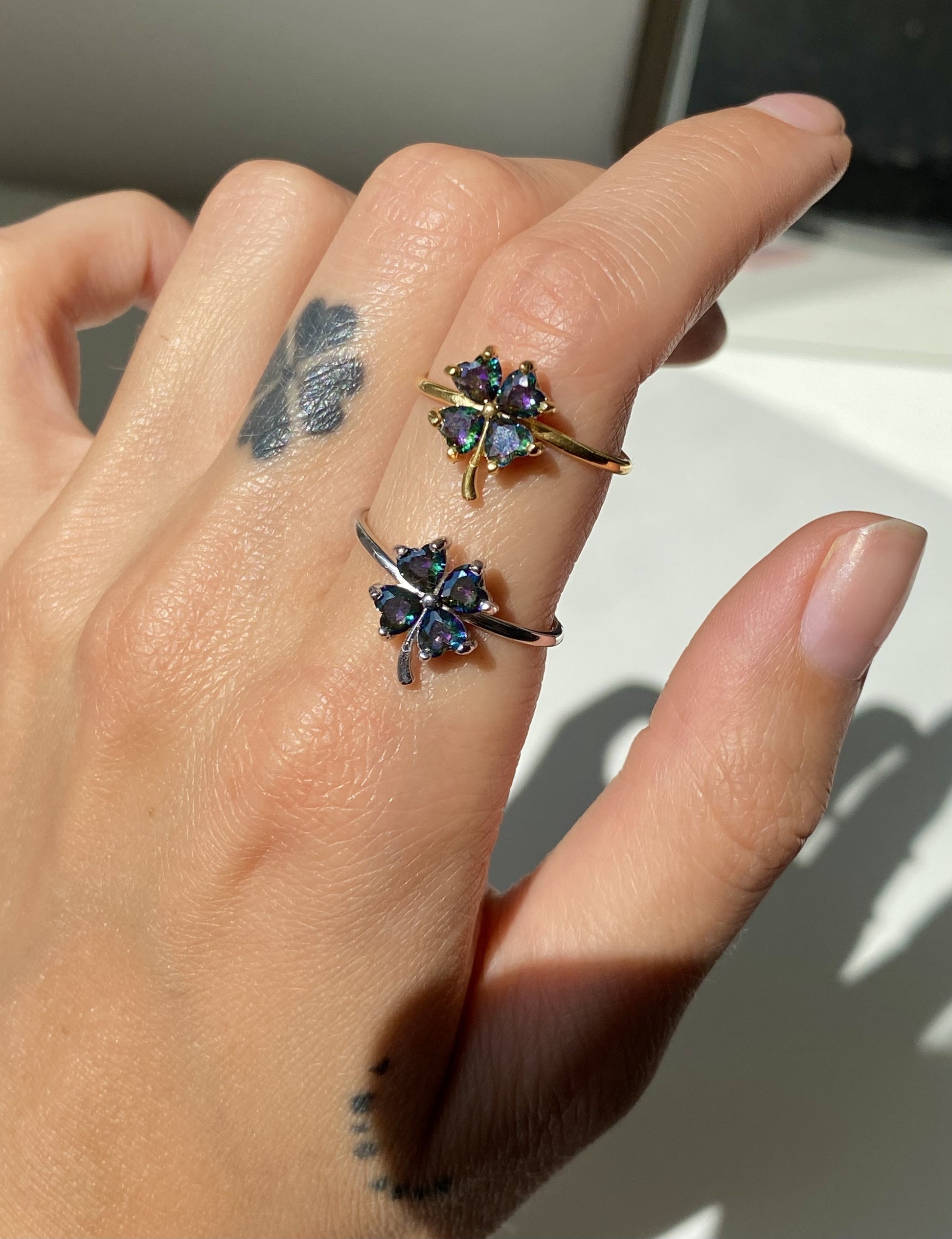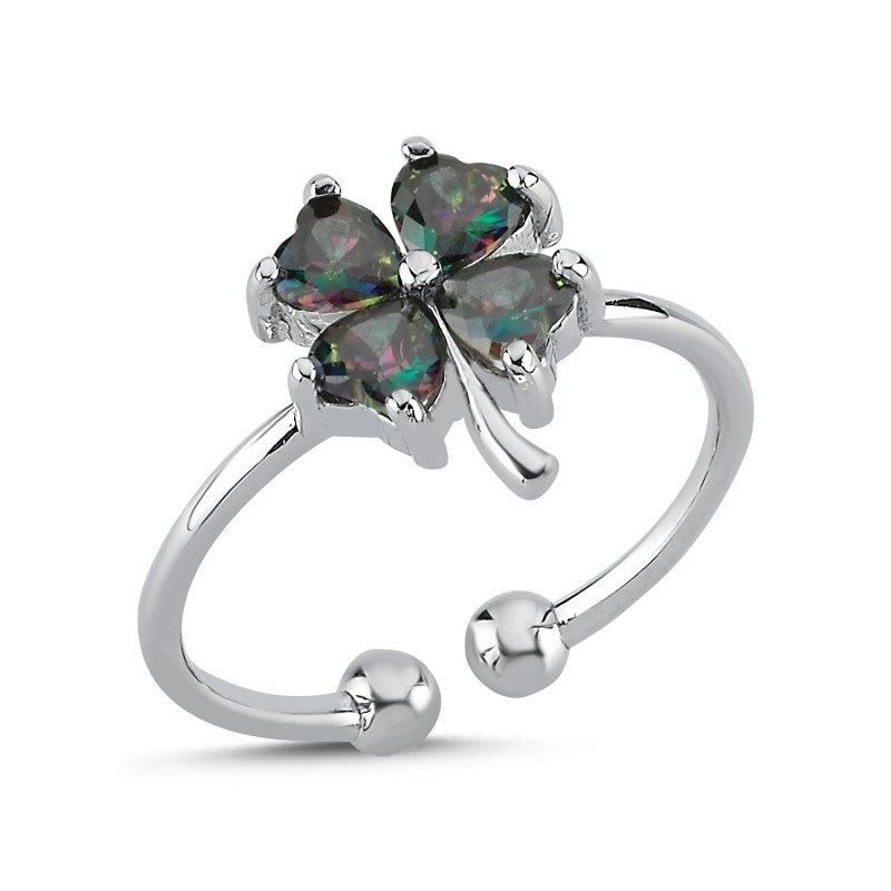 Sidabrinis rodžiuotas žiedas su mistiniu topazu "Keturlapis dobilas"