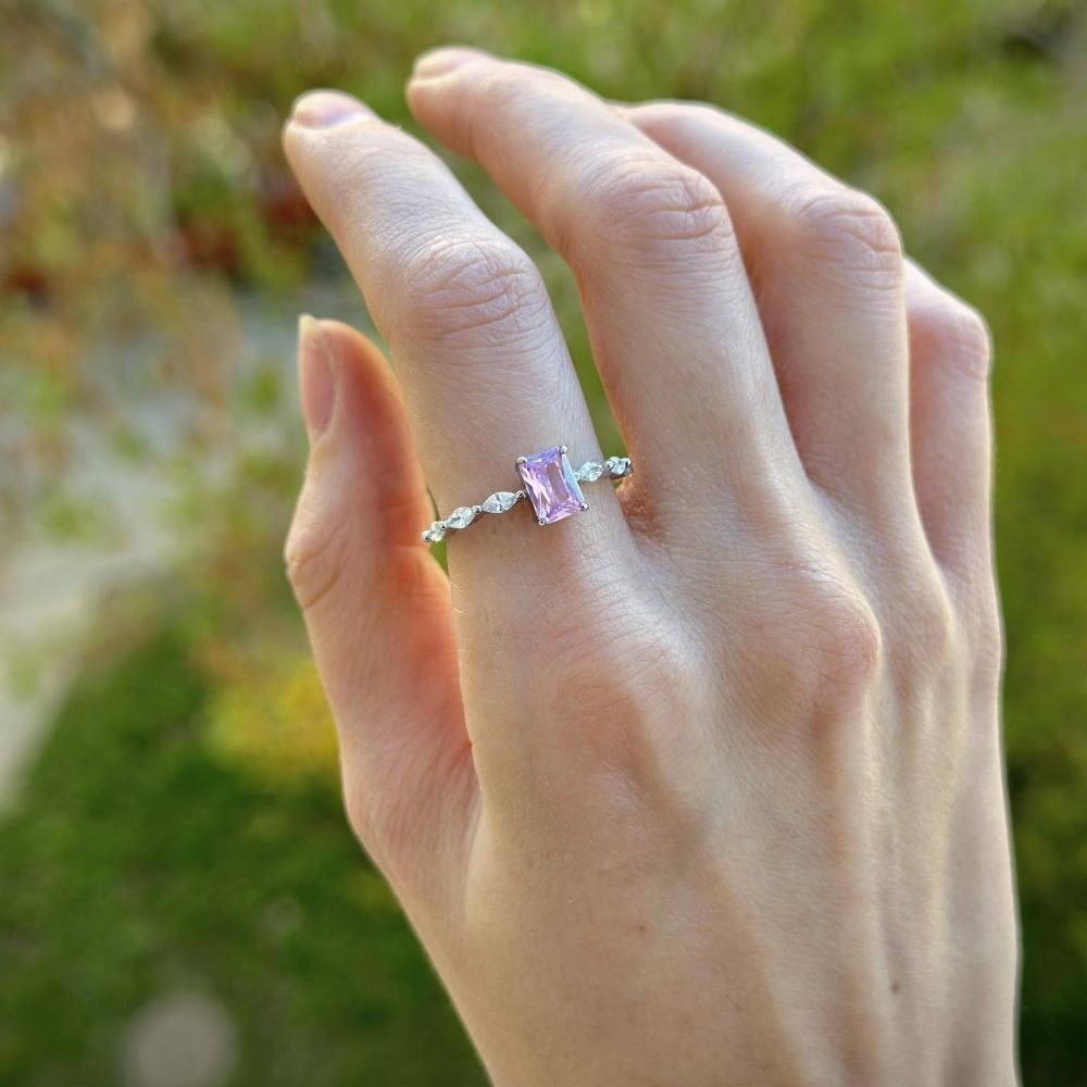 Sidabrinis rodžiuotas žiedas su rožiniu stačiakampiu cirkoniu