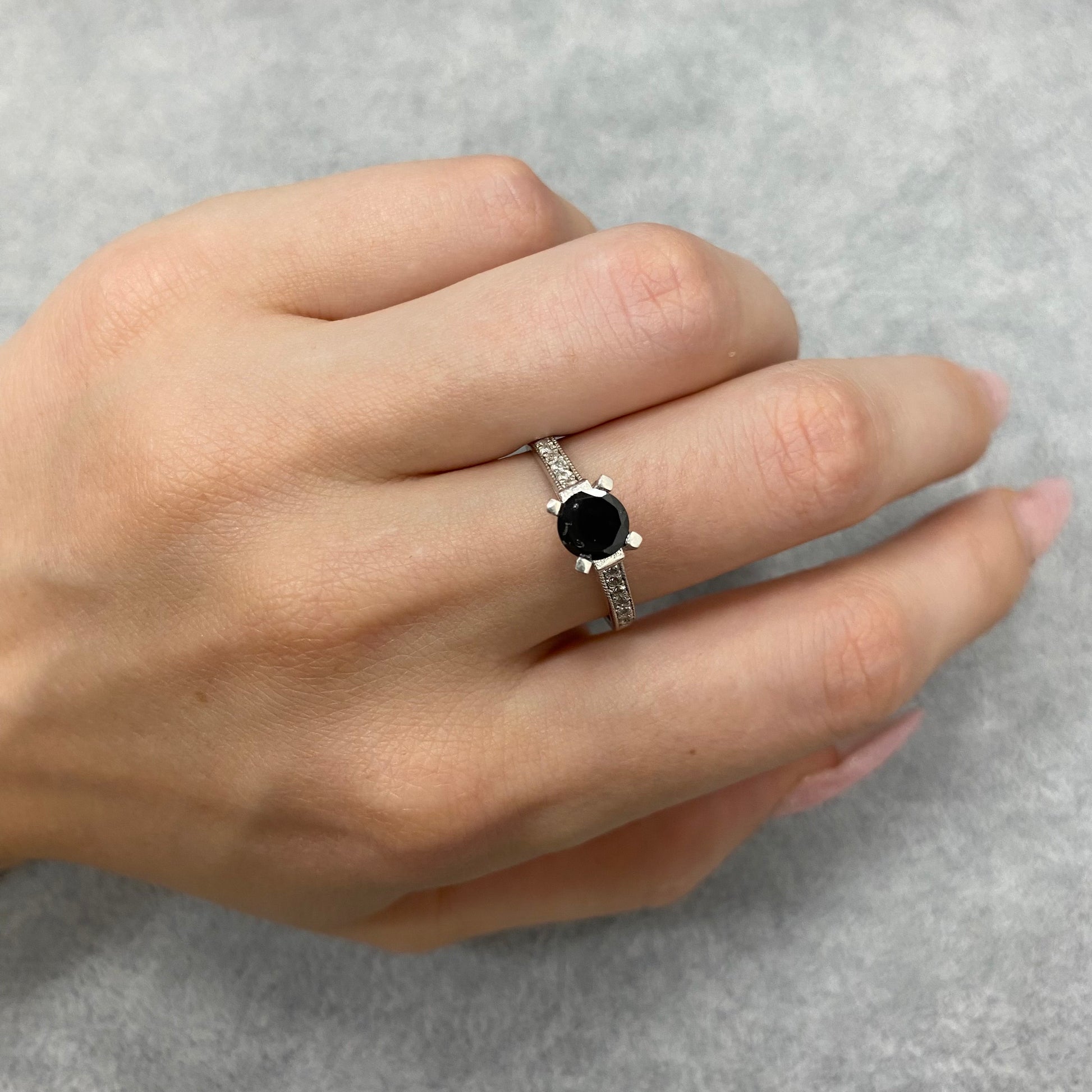 Sidabrinis rodžiuotas žiedas su juodo cirkonio akute