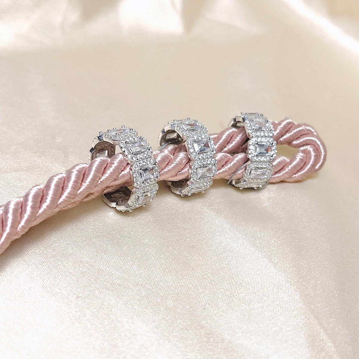 Sidabrinis žiedas su keturkampiais cirkoniais