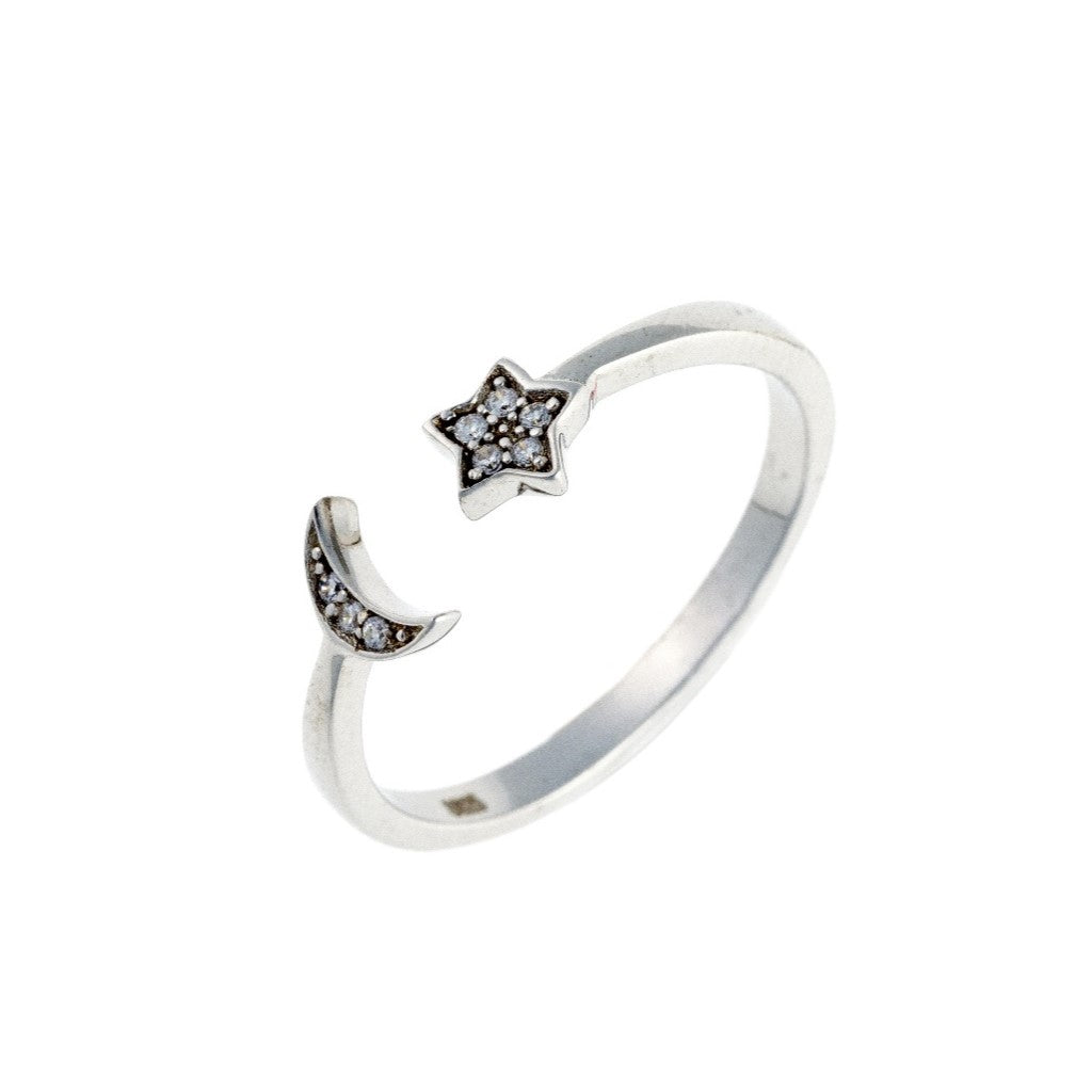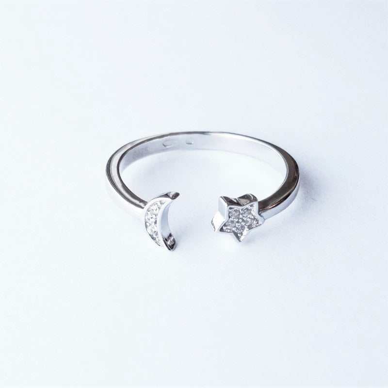 Sidabrinis žiedas su žvaigždute ir mėnuliu