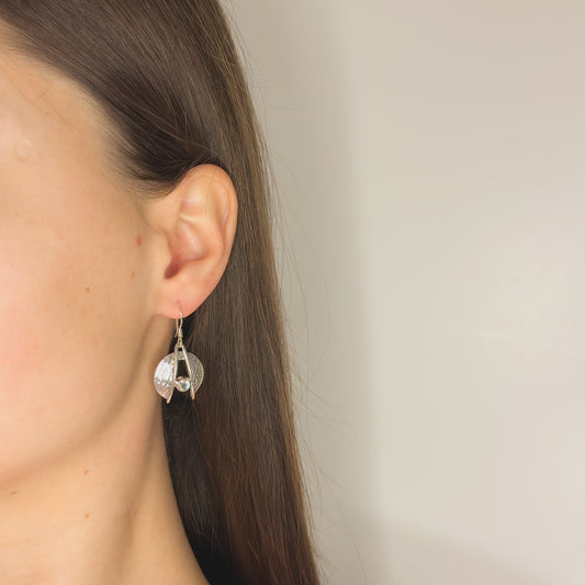 Sidabriniai kabantys auskarai su mėnulio akmeniu