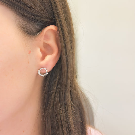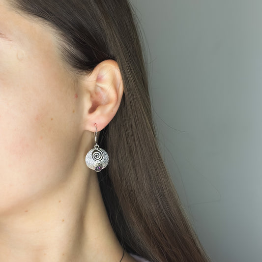 Sidabriniai rodžiuoti apvalūs auskariukai su cirkoniais