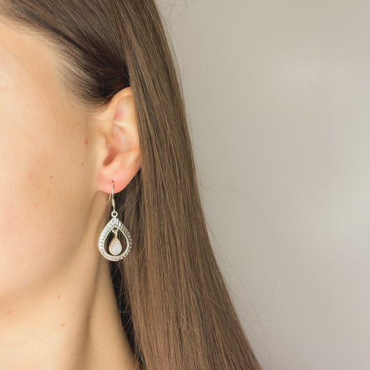 Sidabriniai kabantys auskarai su mėnulio akmeniu