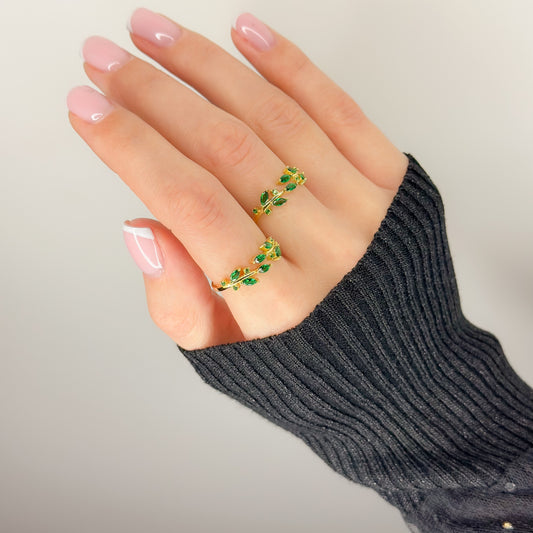 Sidabrinis auksuotas reg. dydžio žiedas su žaliu cirkoniu